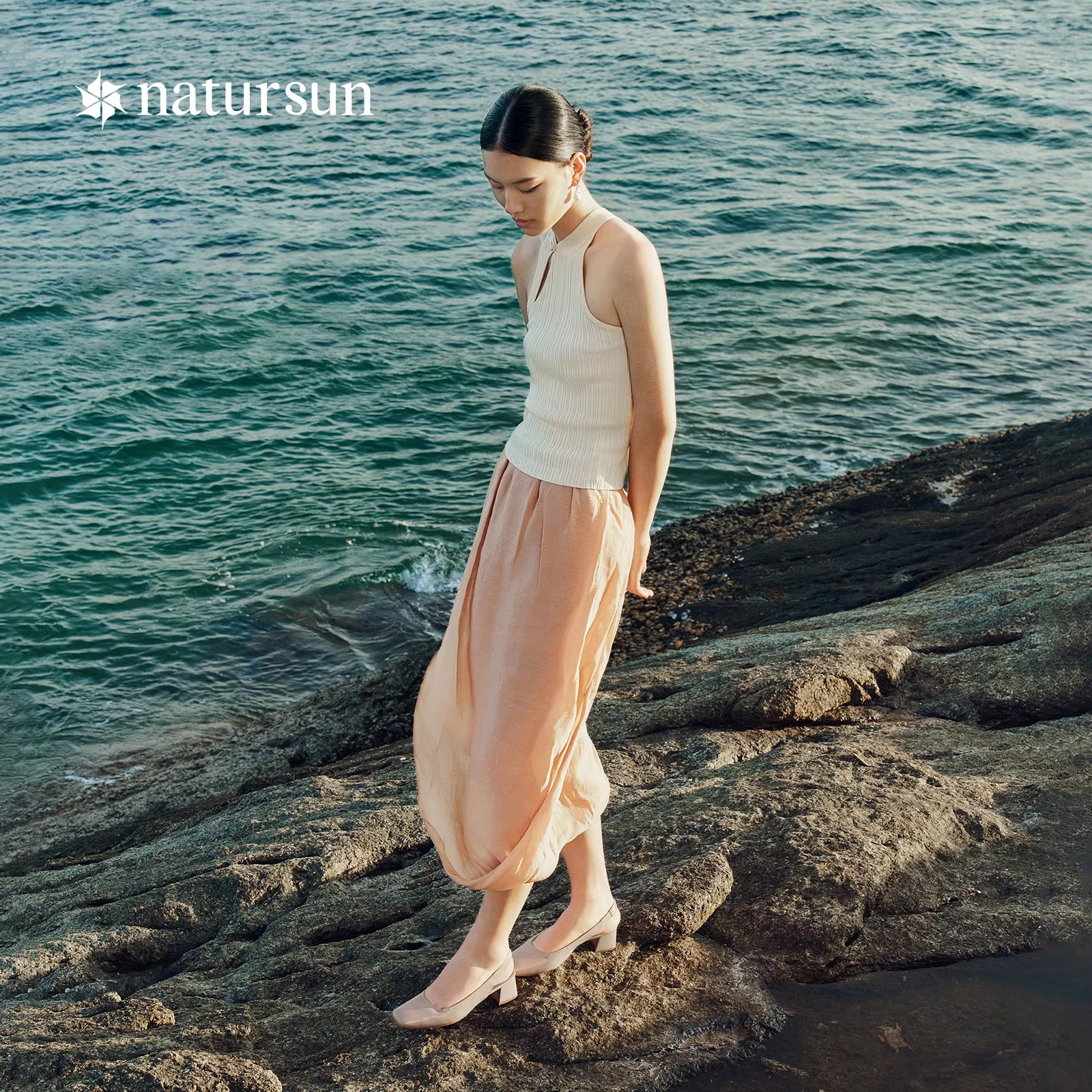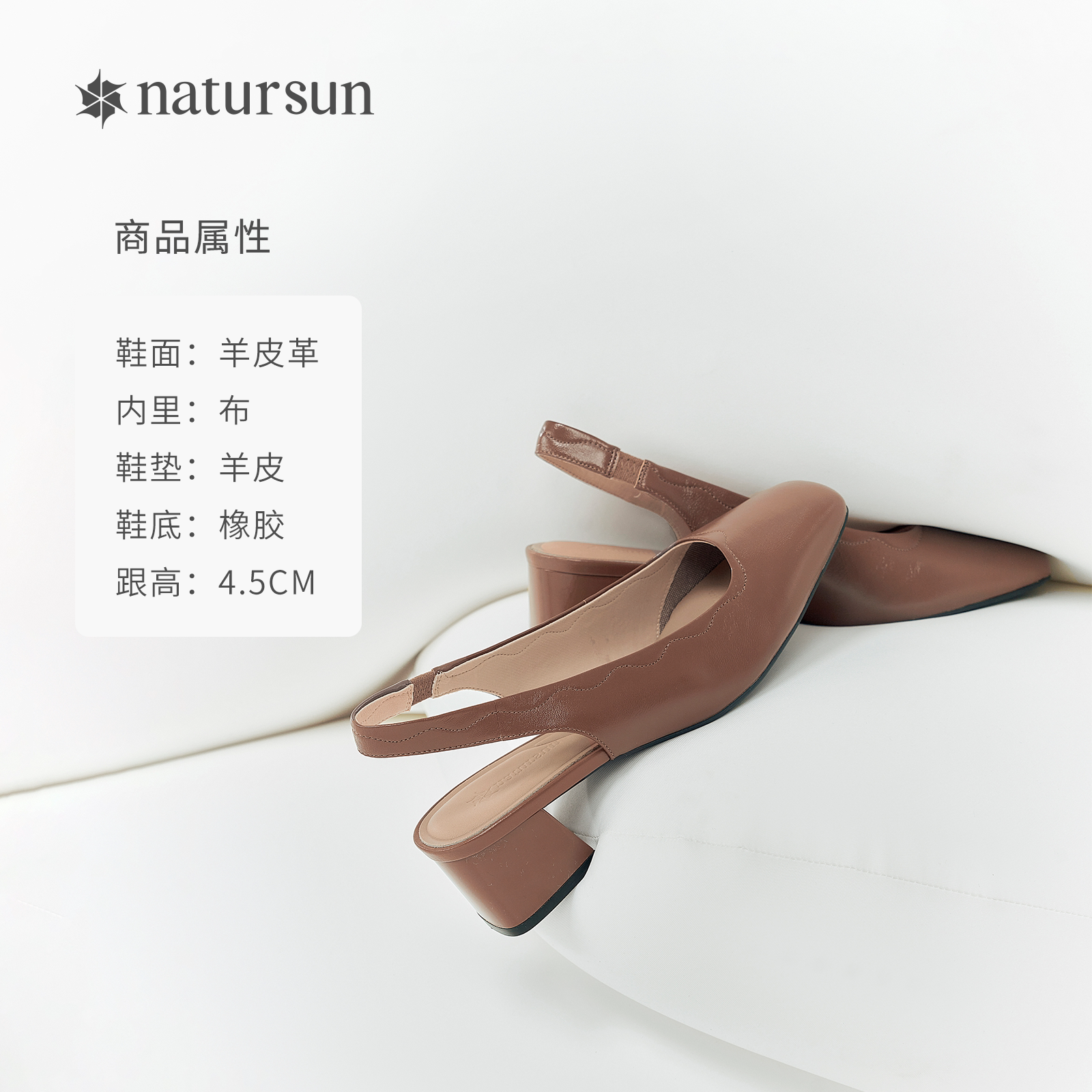 natursun娜冉女式浅口法式尖头通勤凉鞋透气优雅气质羊皮高春季