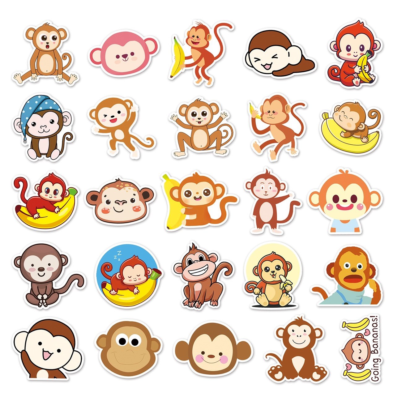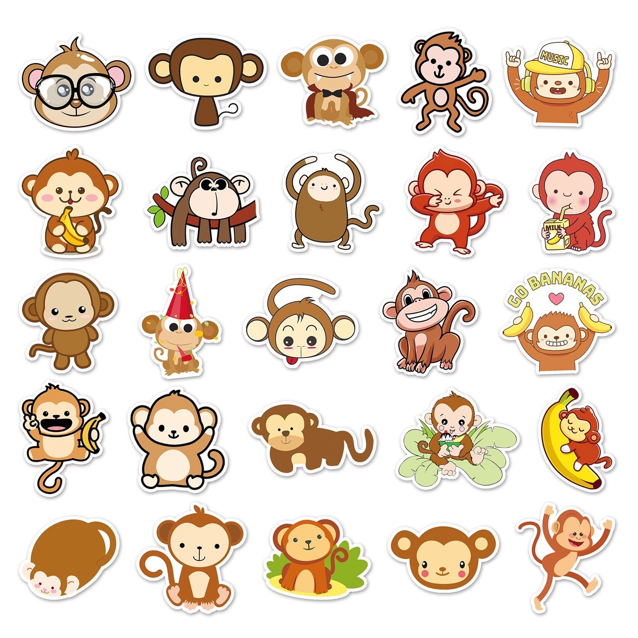 50张卡通可爱小猴子贴纸ins萌趣拉杆箱文具行李头盔手账防水吉他