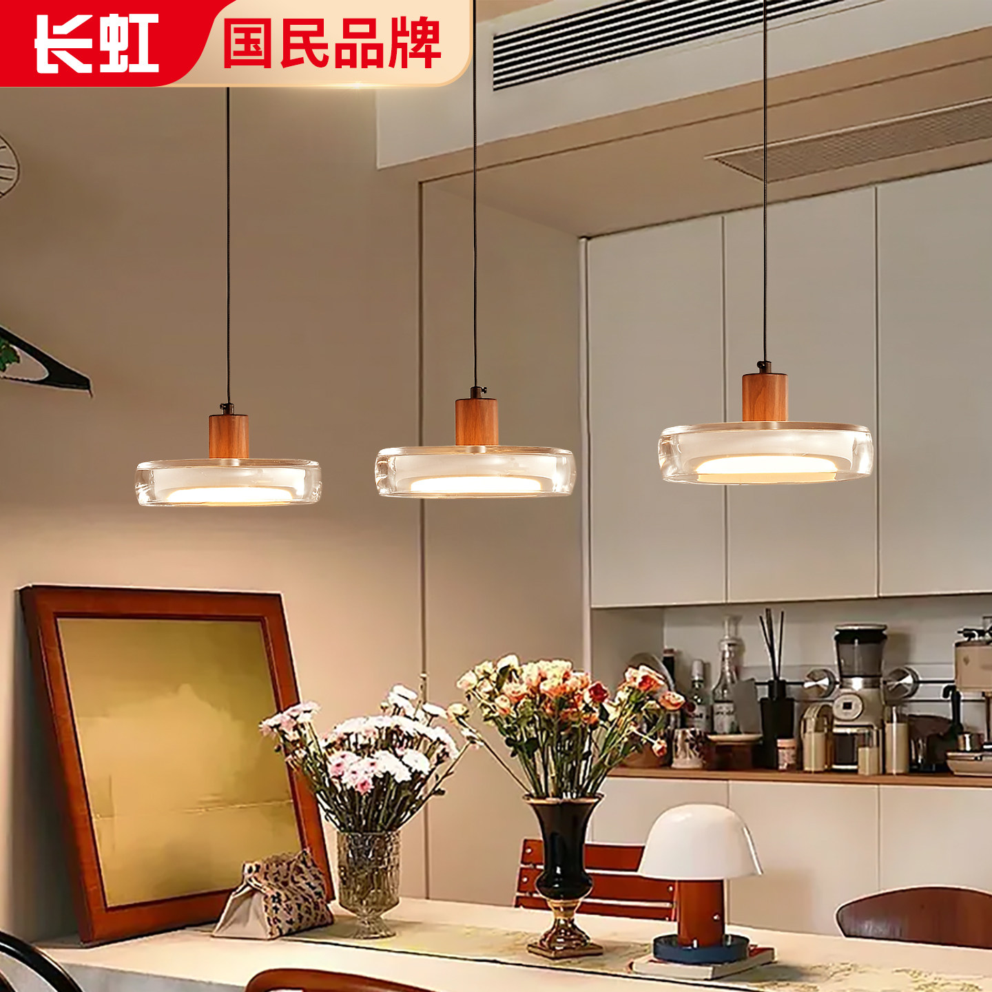 长虹法式复古餐厅吊灯中古风轻奢高级感一字长条餐桌玻璃灯具
