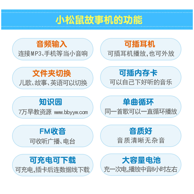小松鼠儿童早教神器故事机可充电下载外放老人音响随身听插卡音箱