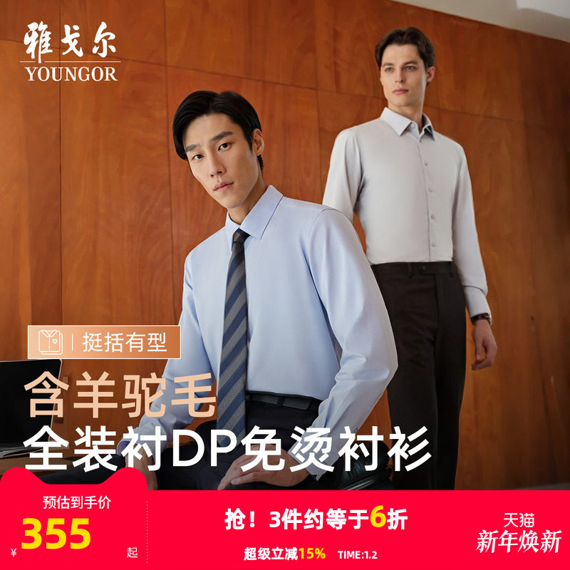 【羊驼毛TNDP】雅戈尔秋季新品商务休闲保暖免烫格纹长袖衬衫男
