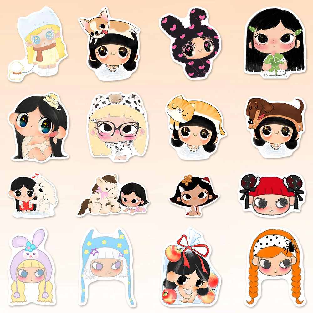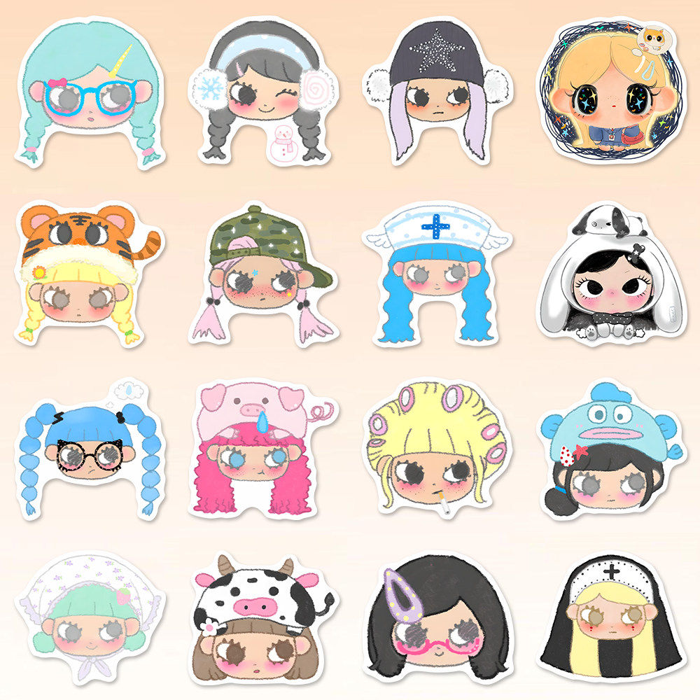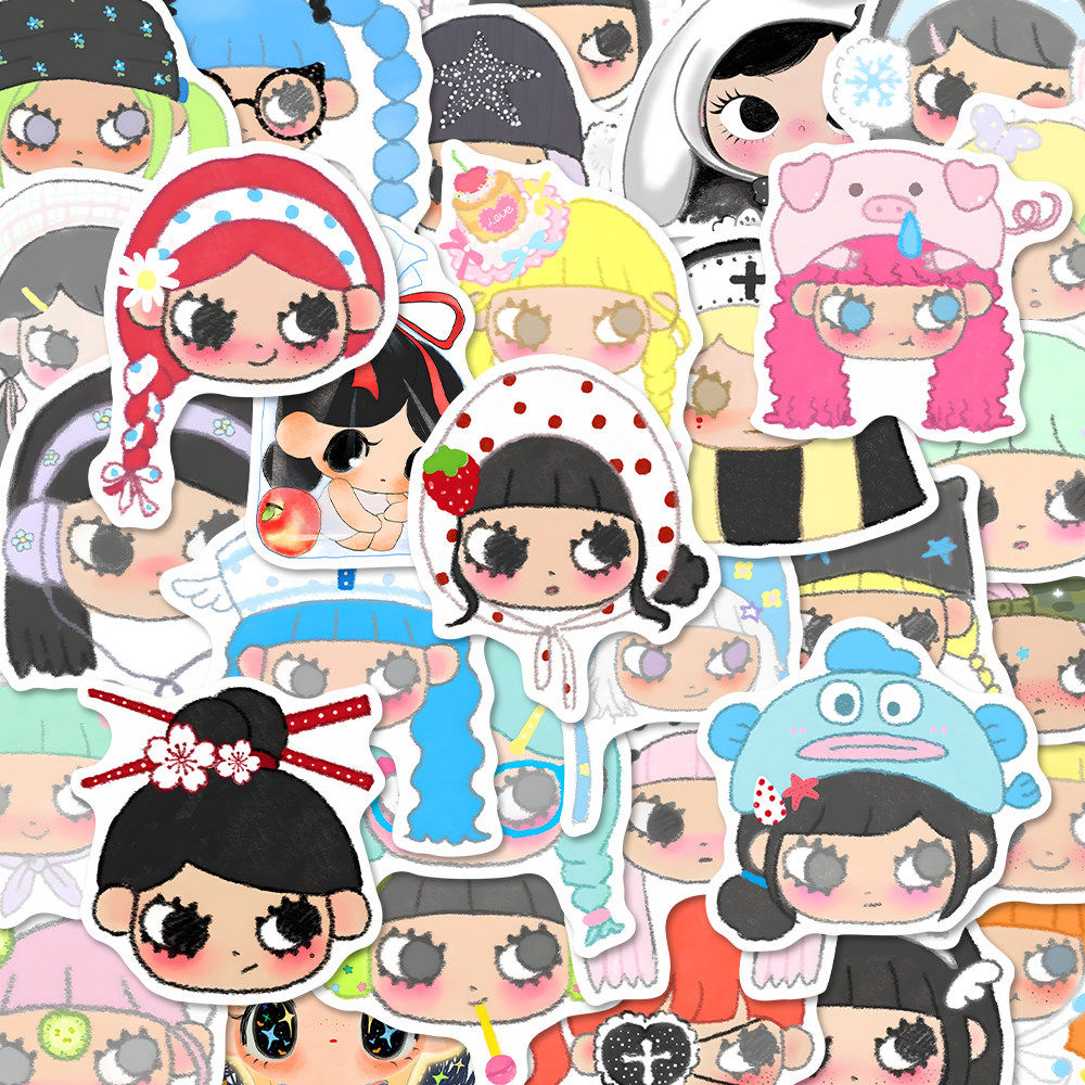 124张治愈手绘贴纸二次元热门卡通小女孩插画风创意手账贴画装饰