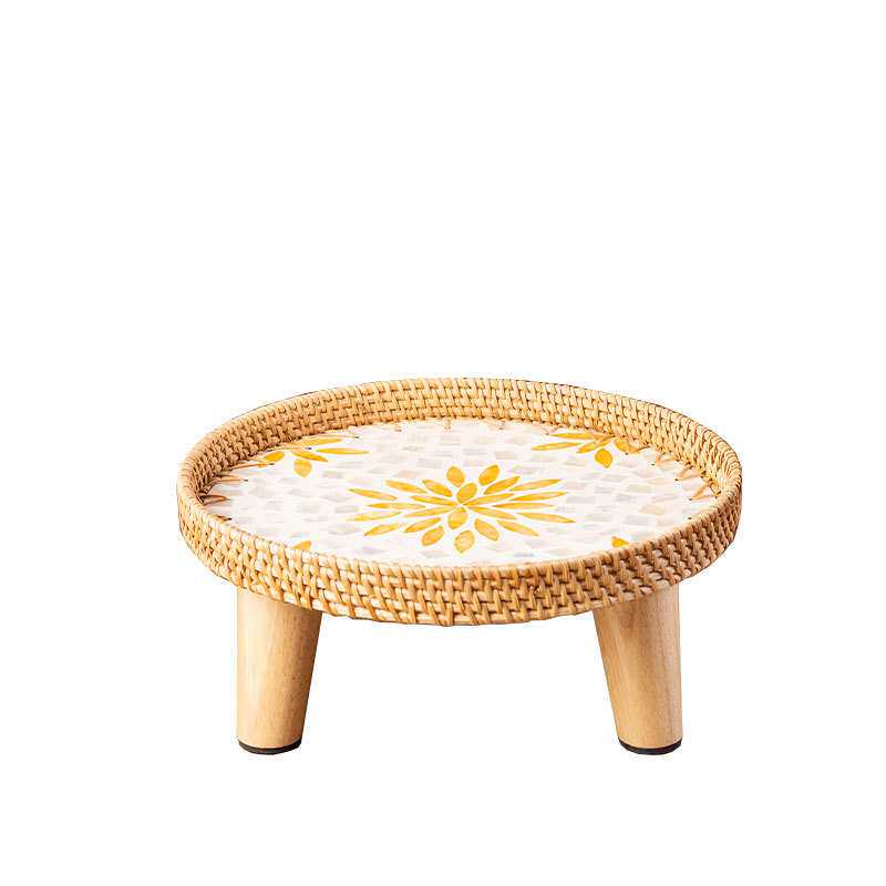 越南手工藤编贝壳飘窗茶几方沙发小边几日式榻榻米小圆桌野餐桌