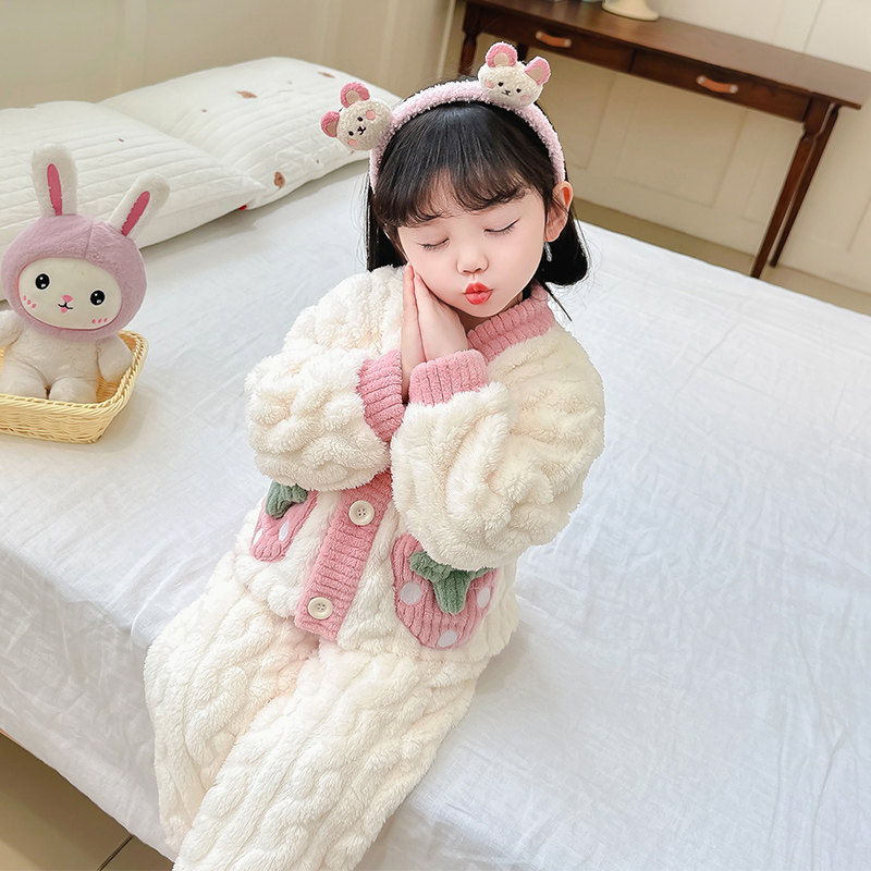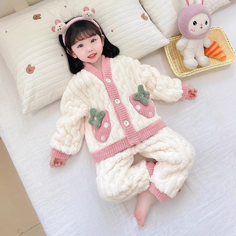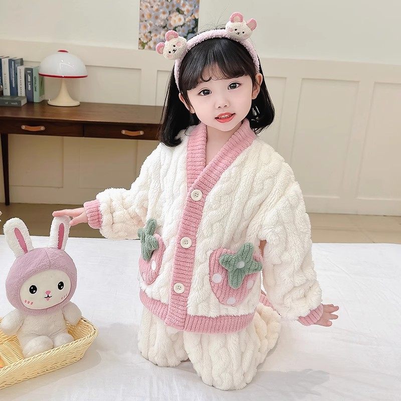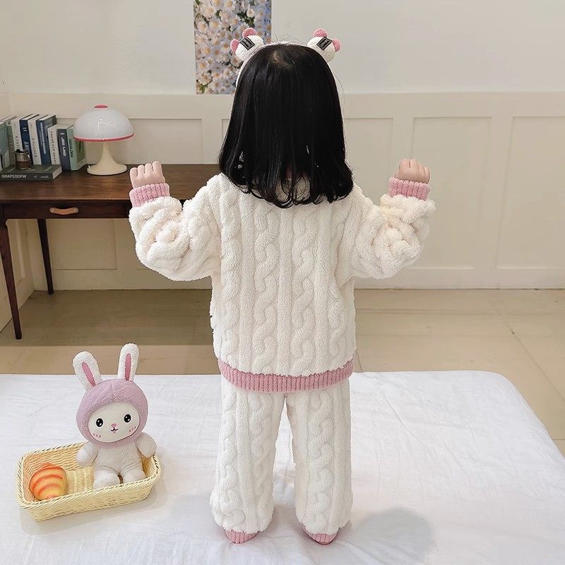 女童珊瑚绒睡衣秋冬款2025新款宝宝加绒加厚冬季儿童法兰绒家居服