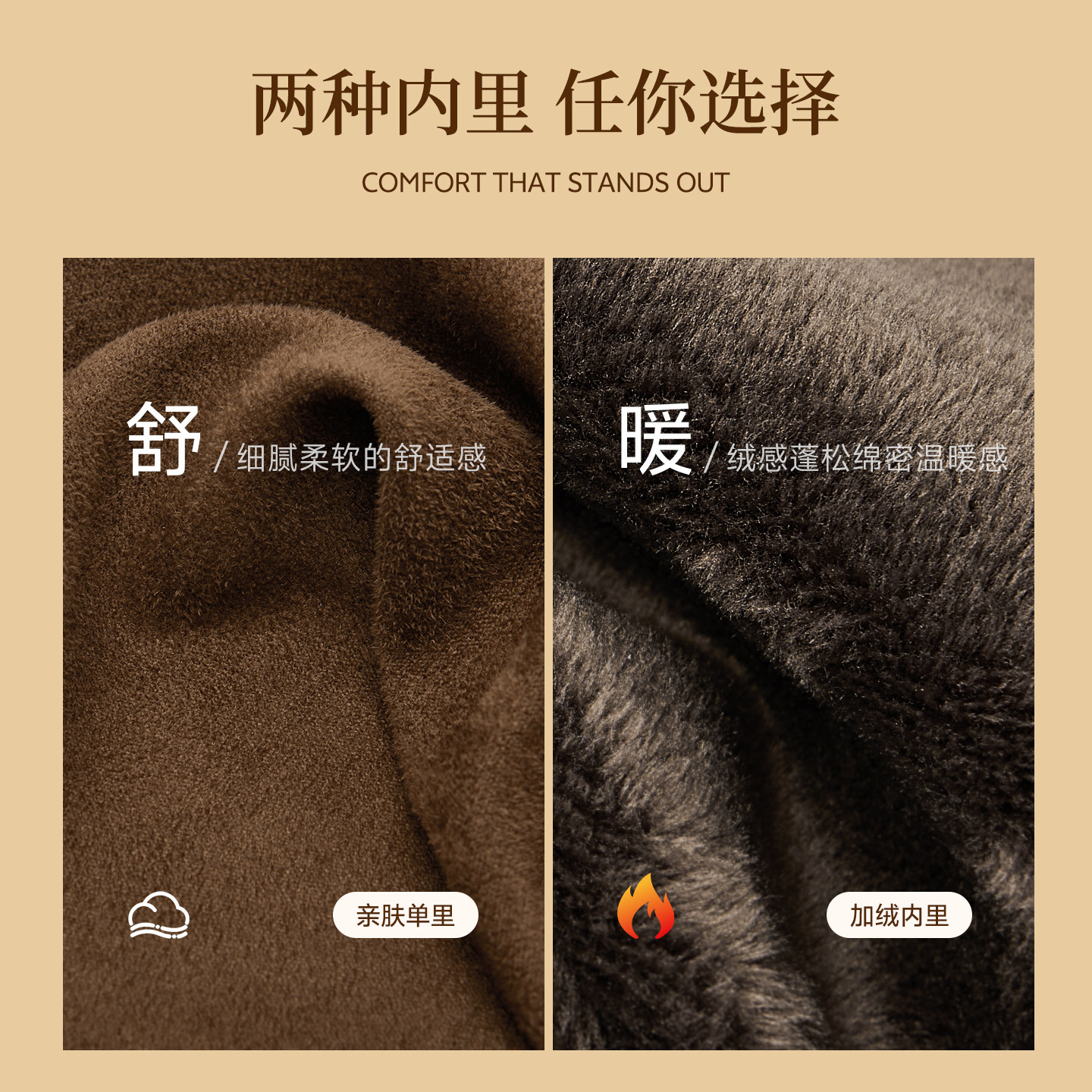 牛皮~骄屿复古圆头雪地靴加绒保暖毛毛棉靴两穿平底棕色勃肯短靴