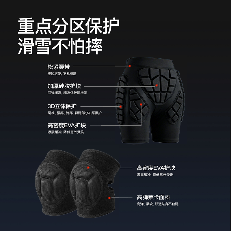 滑雪护具护臀内穿护膝防摔屁垫护臀垫护臀裤护肘内护装备套装全套