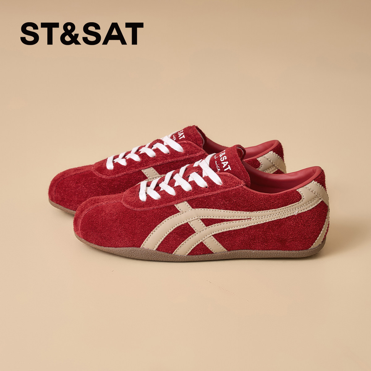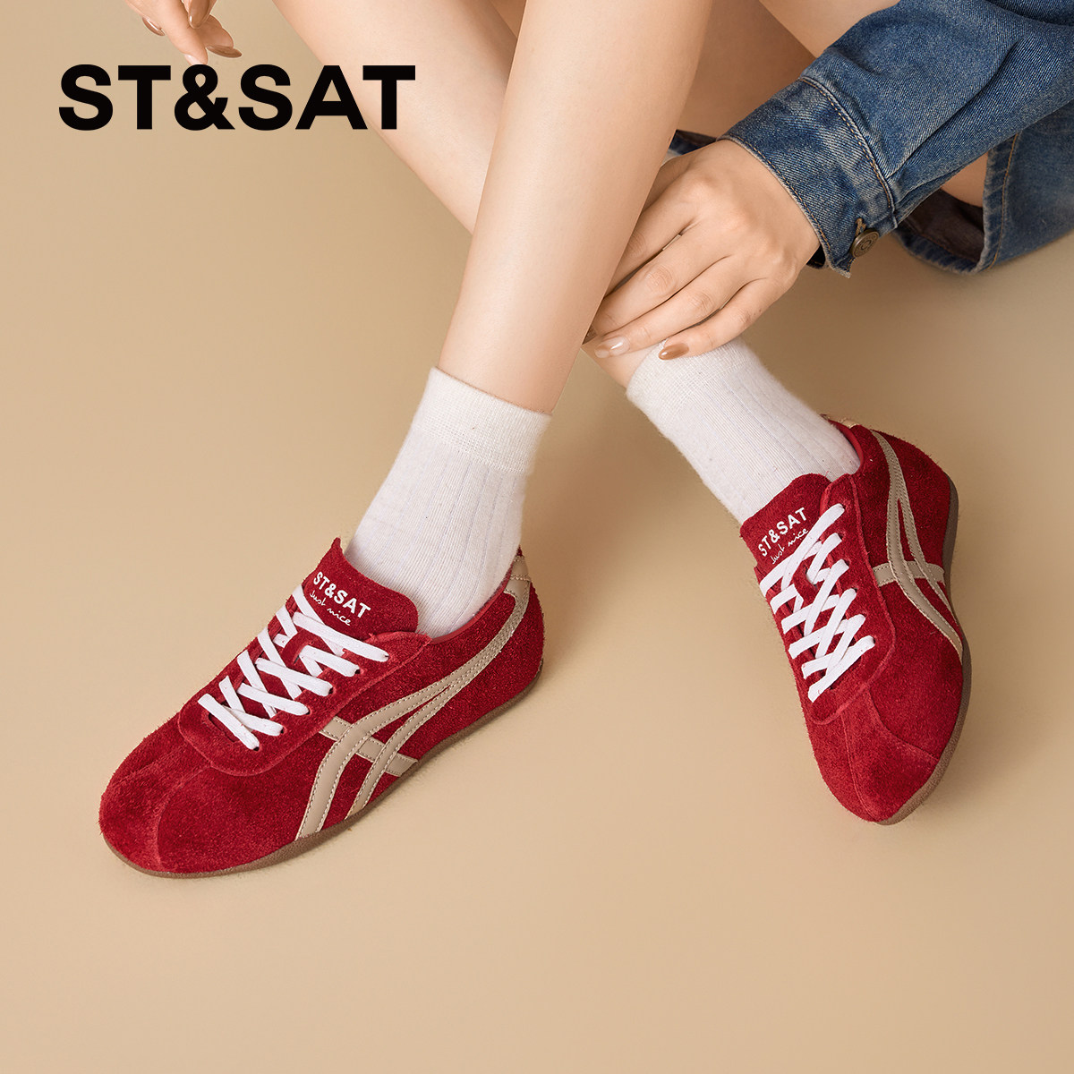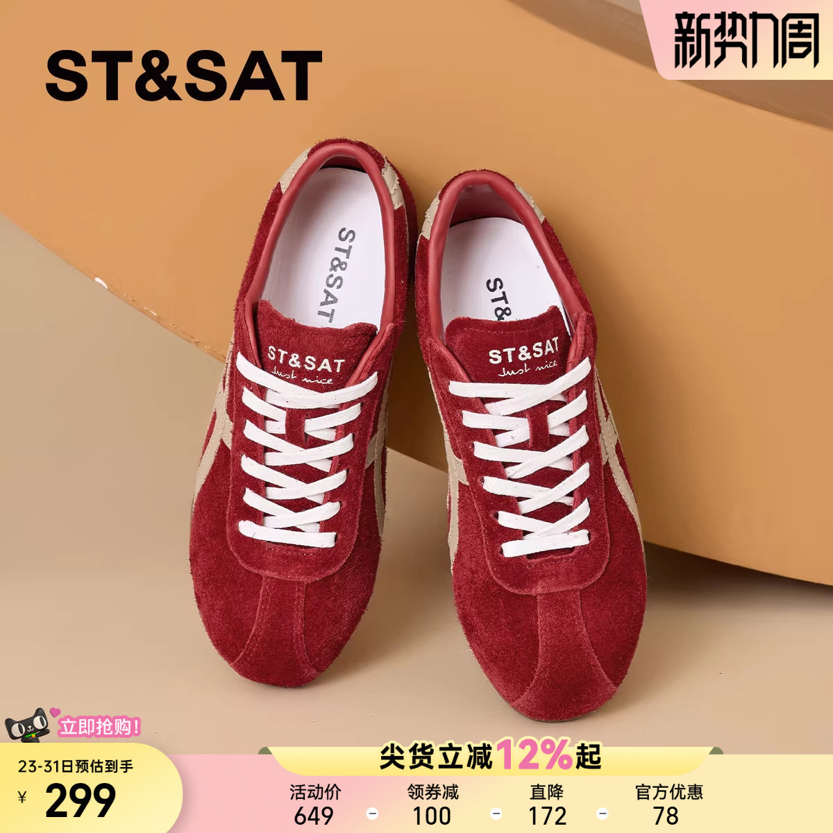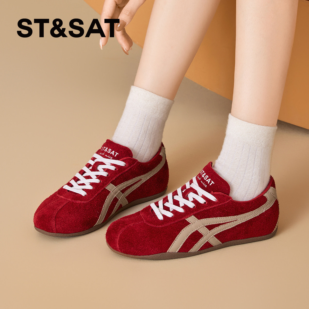 星期六平底德训鞋女2026年春季新款多巴胺百搭红色舒适时尚休闲鞋