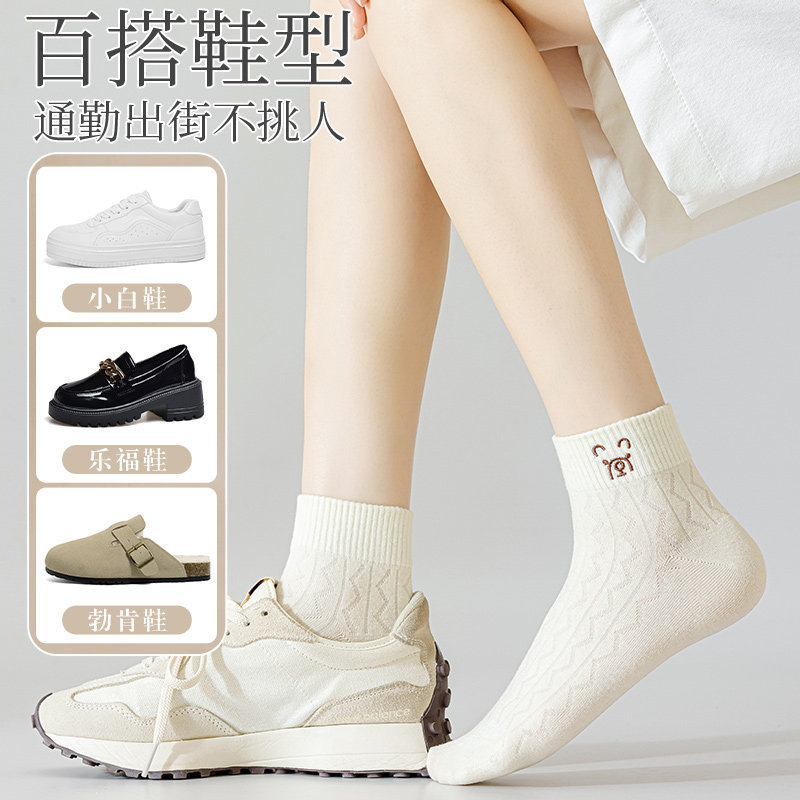 诸暨袜子女士春秋季中短筒袜女款无骨运动薄款袜夏天白色可爱棉袜
