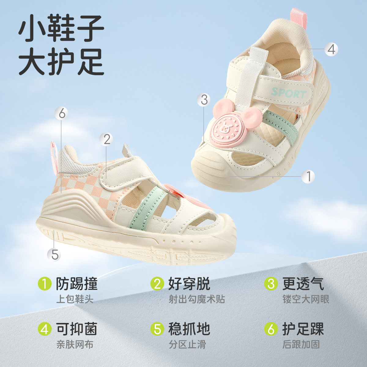 婧麒夏季新款宝宝学步凉鞋女童防滑软底婴儿鞋男童防撞包头防蚊鞋