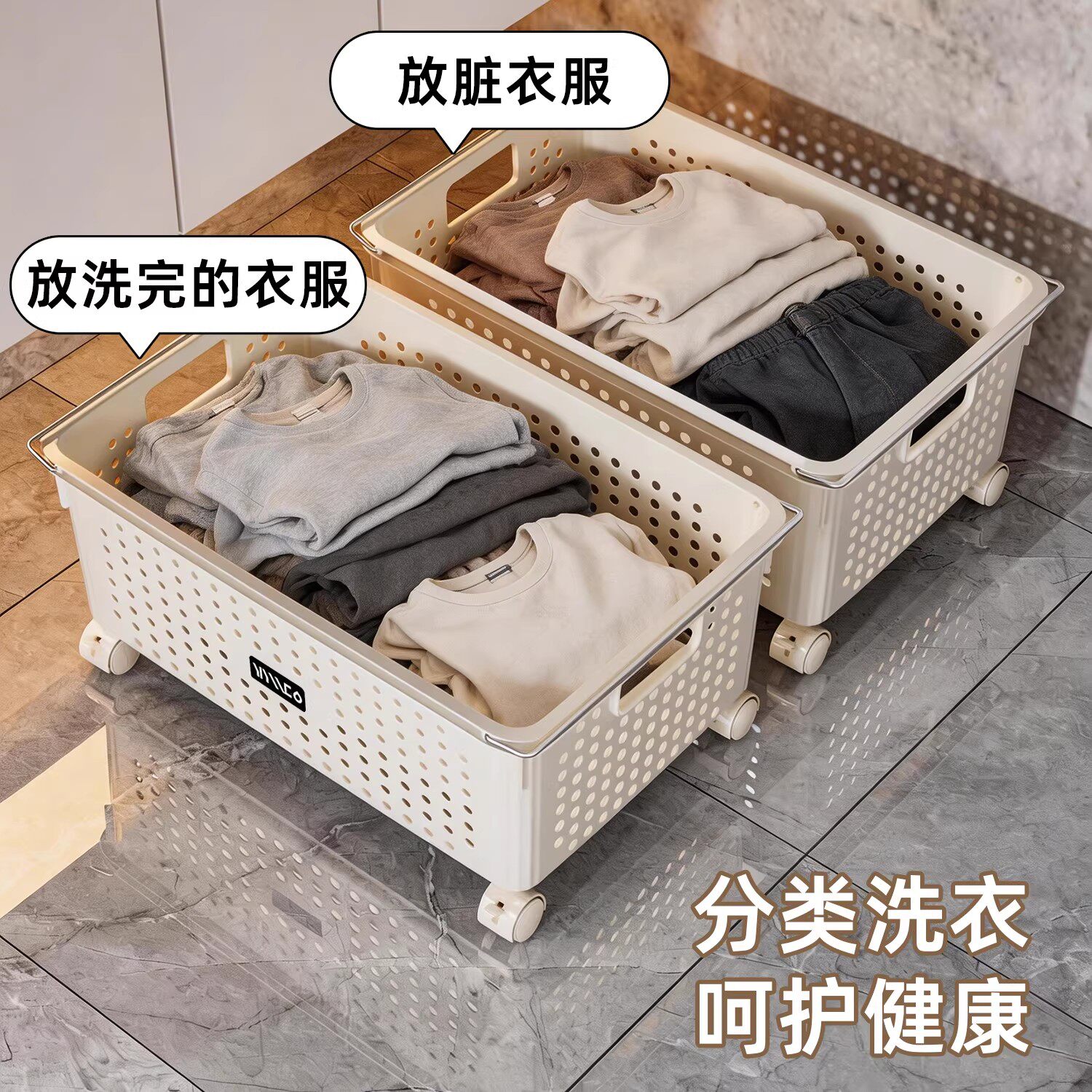 脏衣服可移动收纳筐带轮子家用洗衣篮娃娃收纳桶卫生间放衣物神器