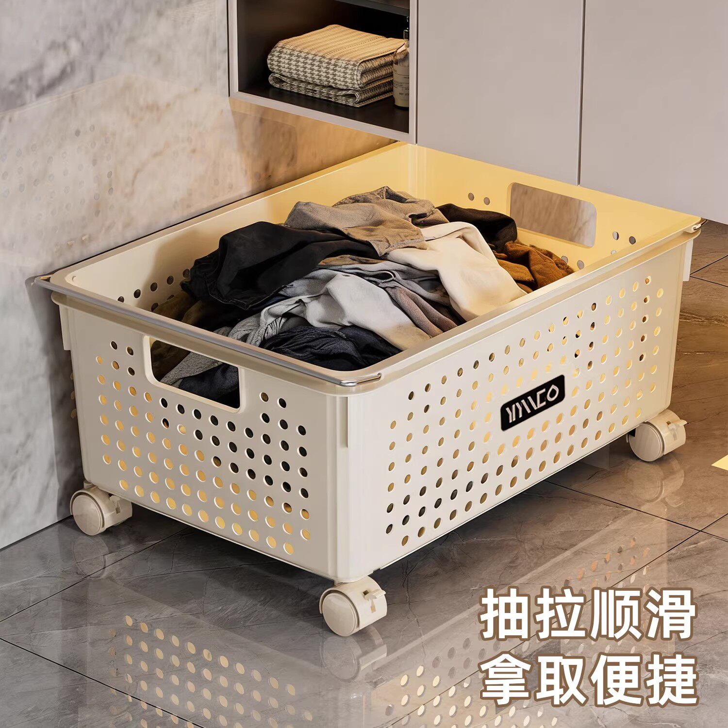 浴室柜下脏衣篓家用脏衣服收纳篮带轮推车防水杂物洗衣篮储物筐子