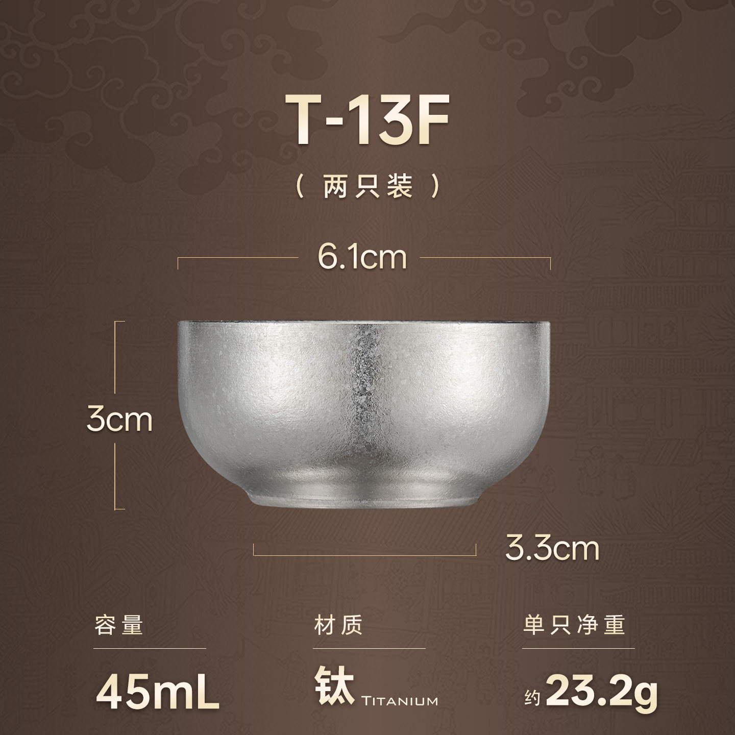 金灶T-13F全钛茶杯套装户外露营便携品茗杯双层隔热防烫功夫茶杯