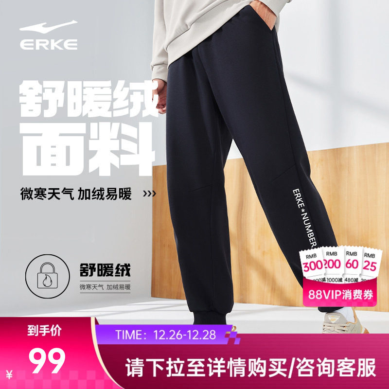 鸿星尔克运动裤男冬季新款男士加厚裤子加绒卫裤休闲男裤长裤冬装