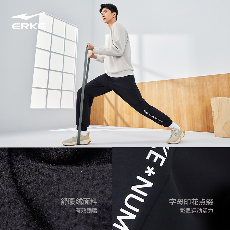 鸿星尔克运动裤男士冬季卫裤加绒男裤男生裤子直筒长裤加厚休闲裤