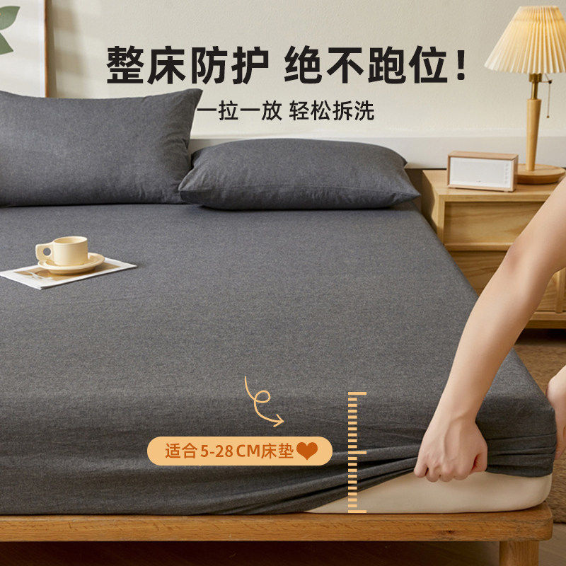 床笠罩单件床单纯色简约水洗棉床垫套床垫保护罩床罩防尘罩防滑套