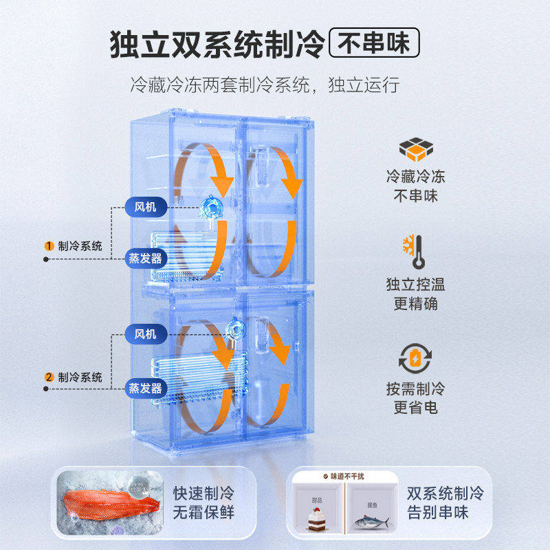 双系统|美的M60小机皇520超薄零嵌入式冰箱家用法式多门四门双开