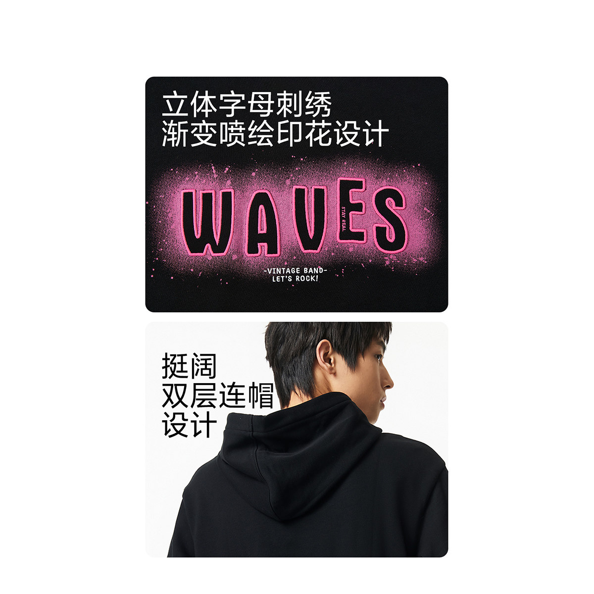 前胸渐变喷绘印花 立体字母刺绣