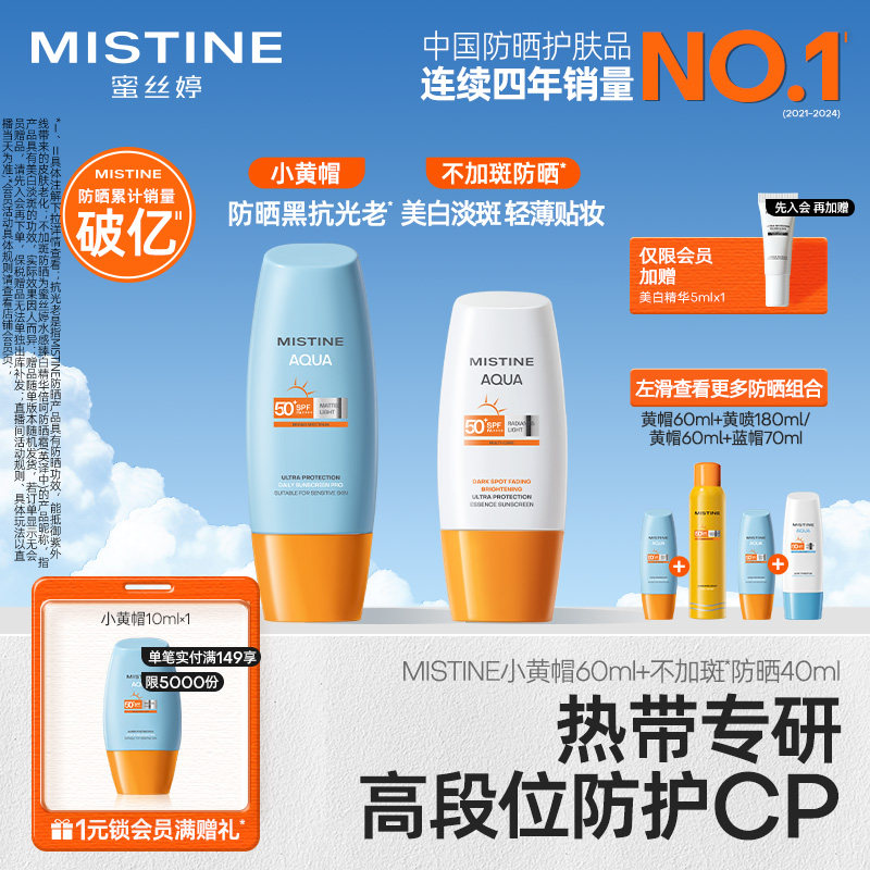 防晒CP Mistine防晒霜乳喷雾女蜜丝婷小黄帽精华防晒