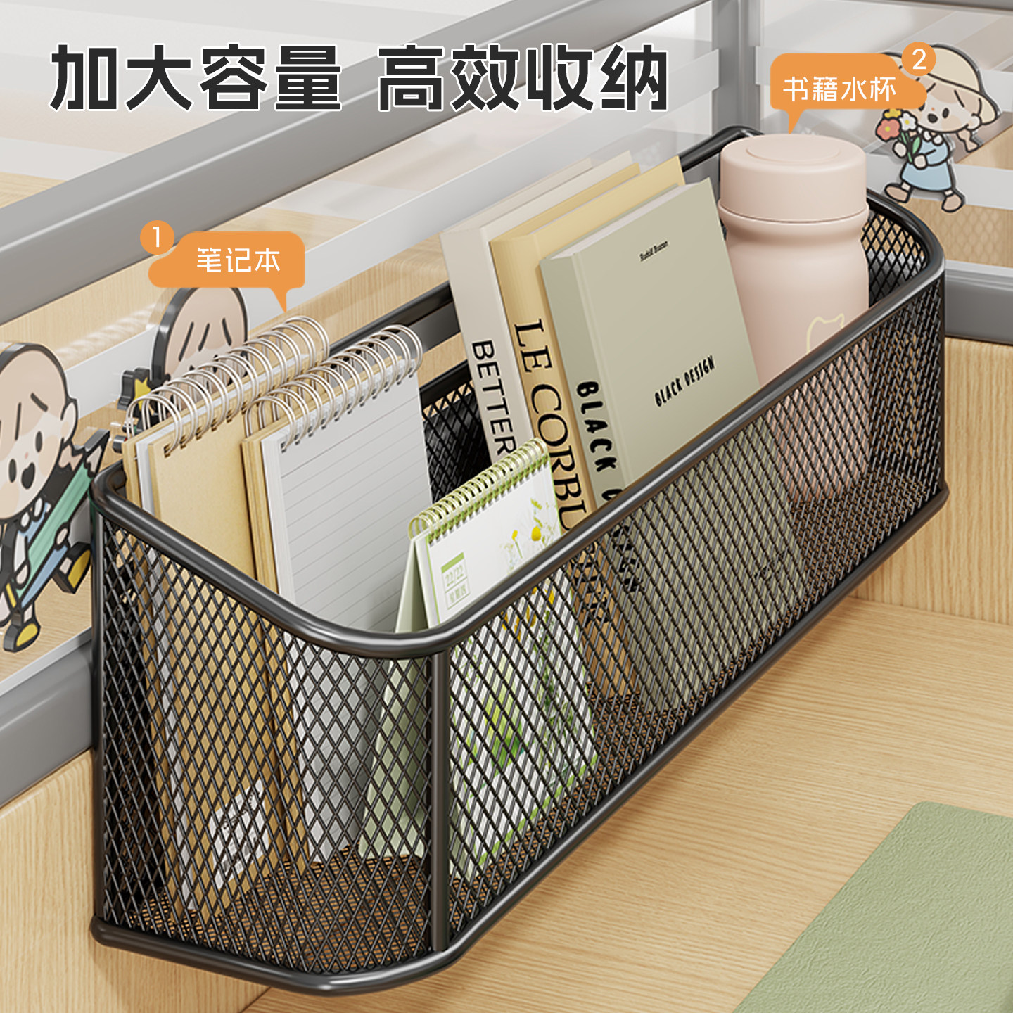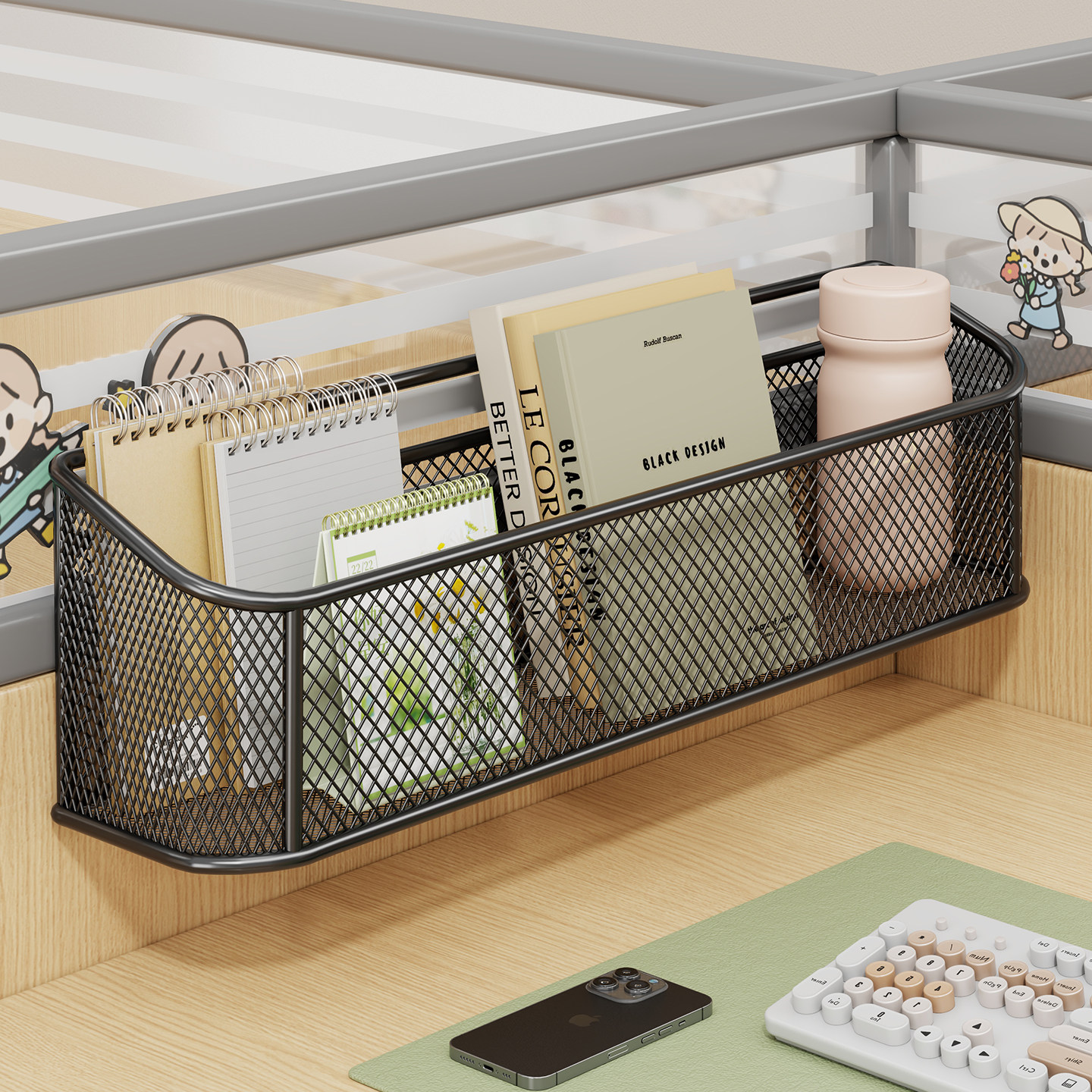 办公桌置物架桌面悬挂式文件收纳架工位整理神器屏风隔板文具资料收纳筐可调节挂钩大容量储物架宿舍床边挂篮