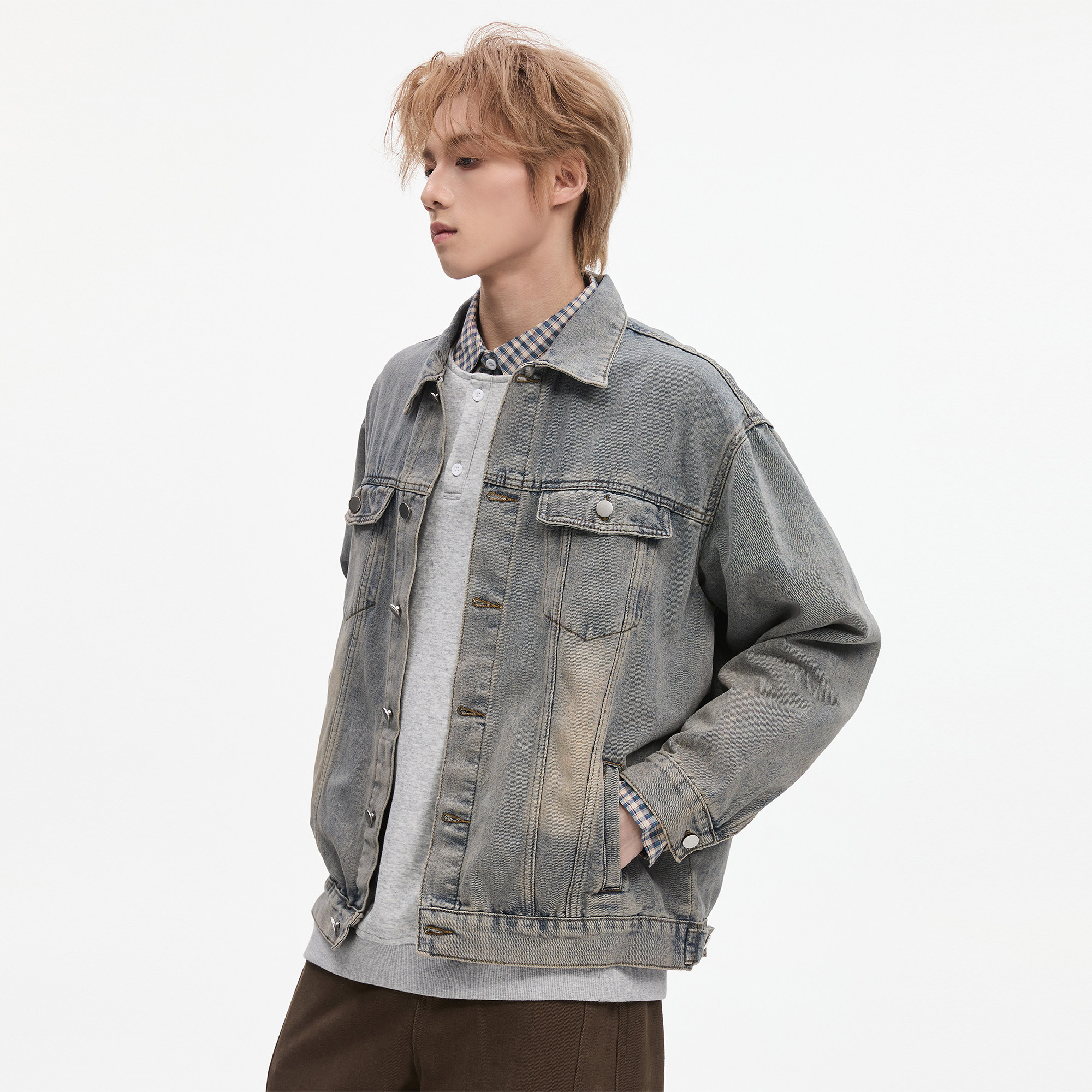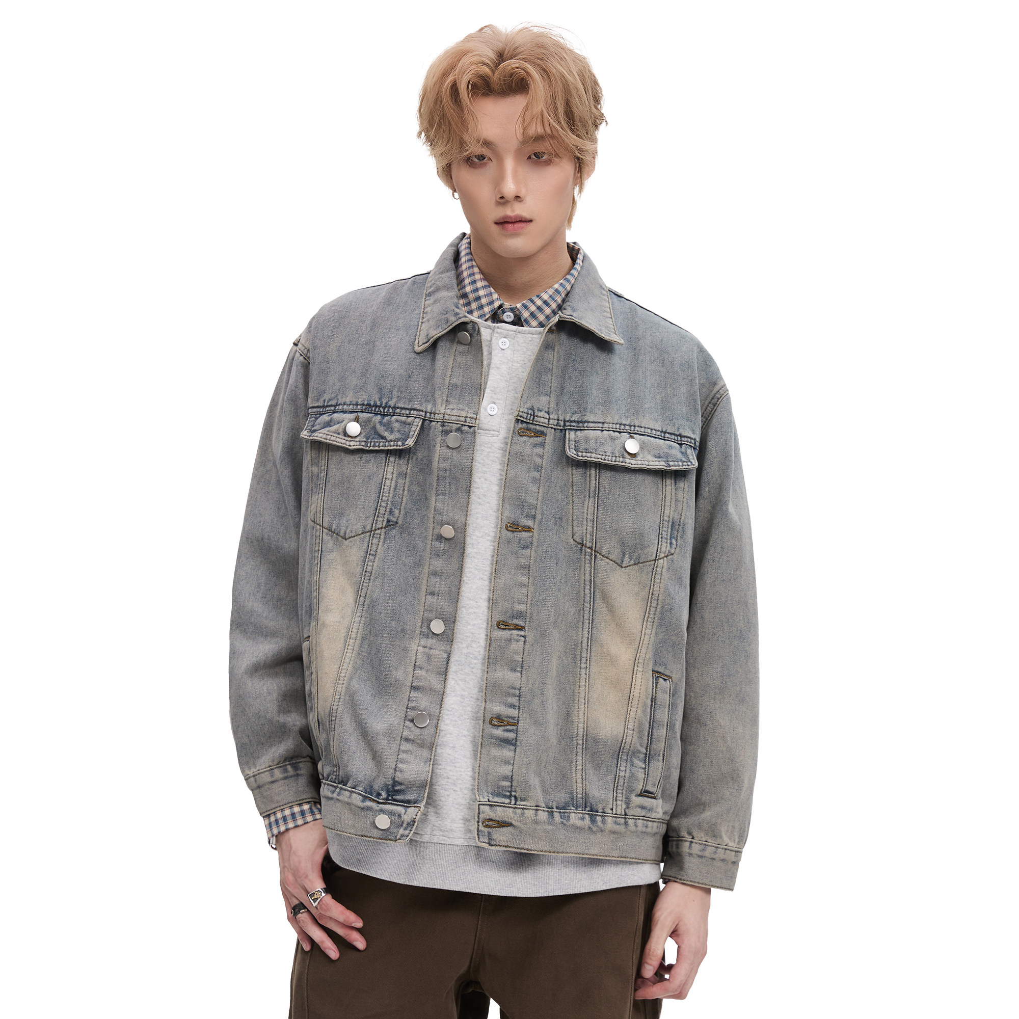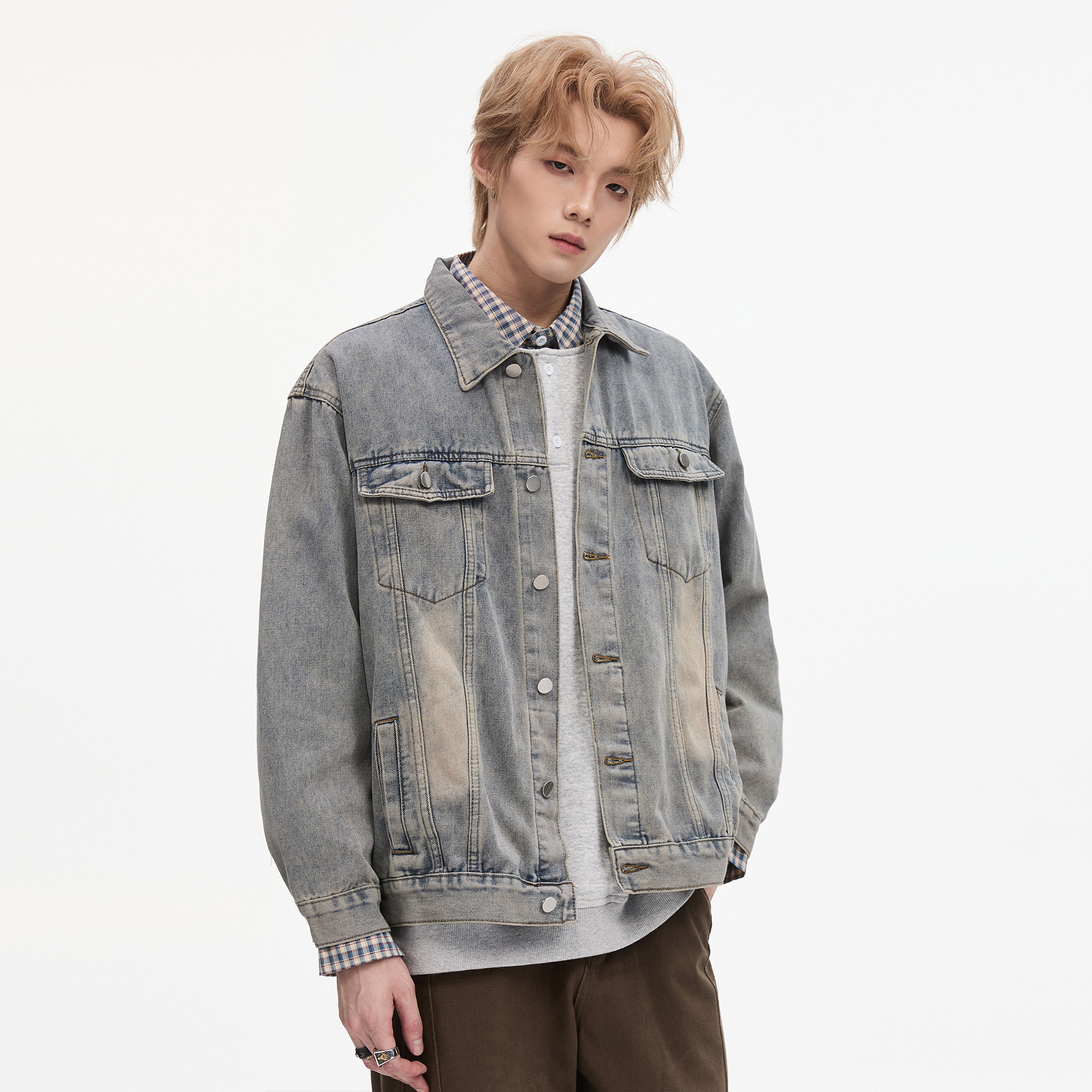 ALLIN 美式高街水洗牛仔衣外套男秋冬季复古宽松cleanfit翻领夹克