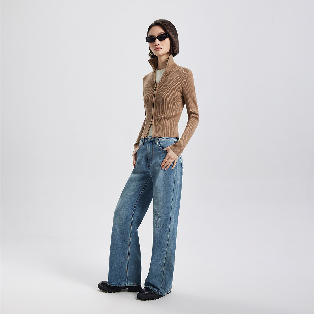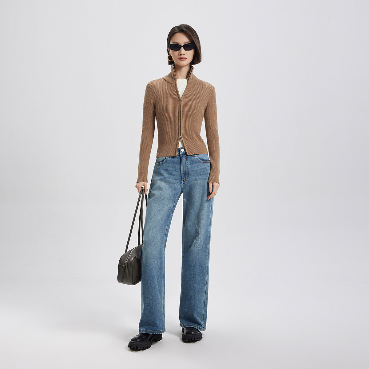 商场同款naivee纳薇秋冬通勤时尚短款显瘦百搭双头拉链针织衫