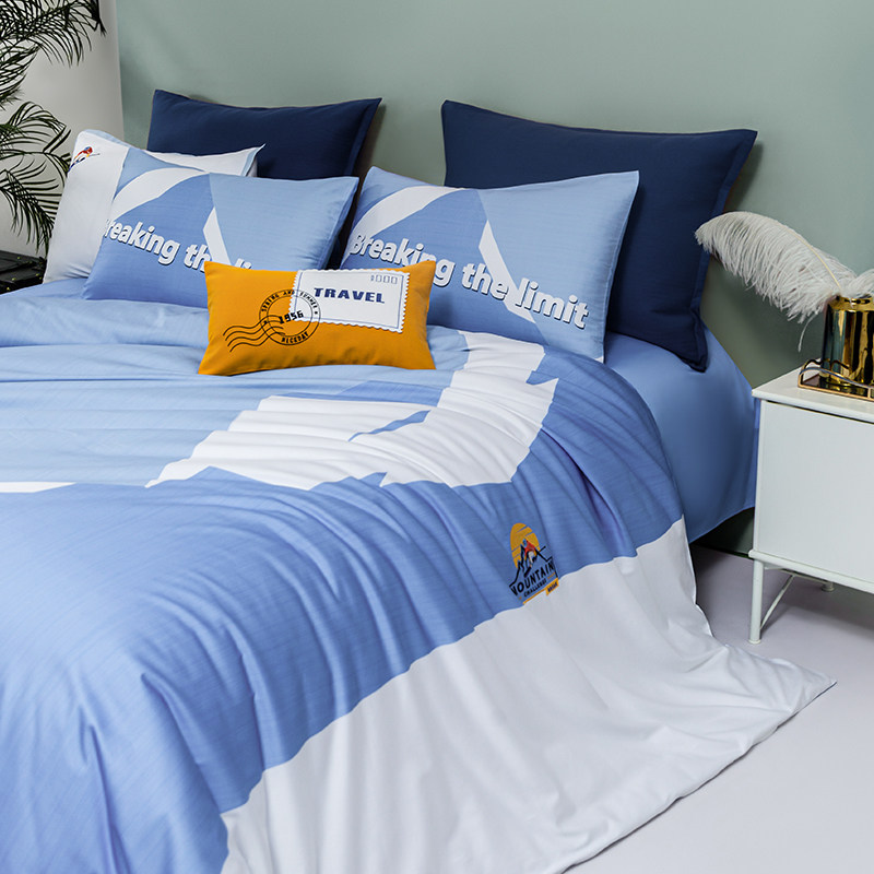 A类水洗棉双层纱四件套被罩非全棉纯棉床单人学生宿舍被套三件套