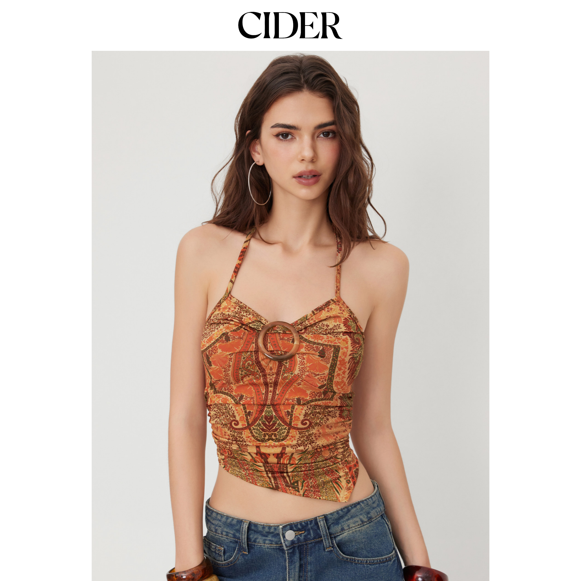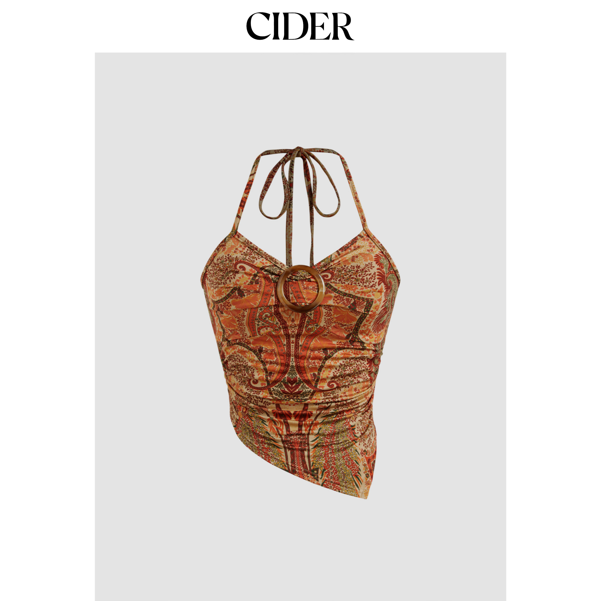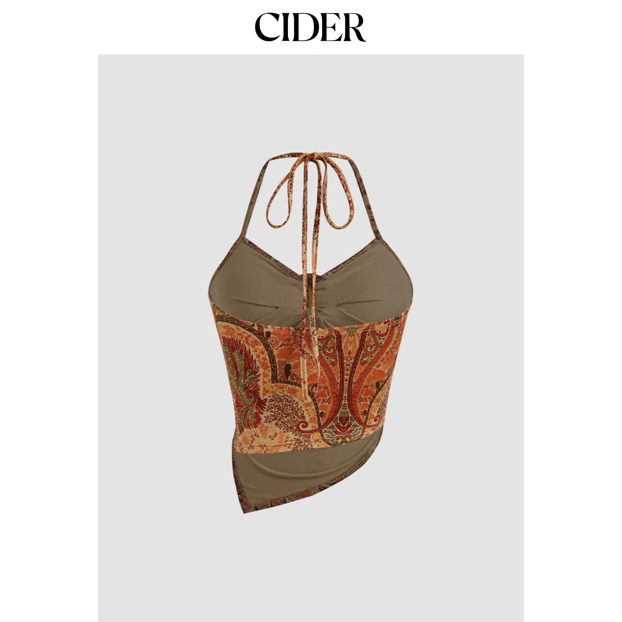 CIDER 挂脖碎花无袖背心下摆短款挂脖吊带上衣114530099