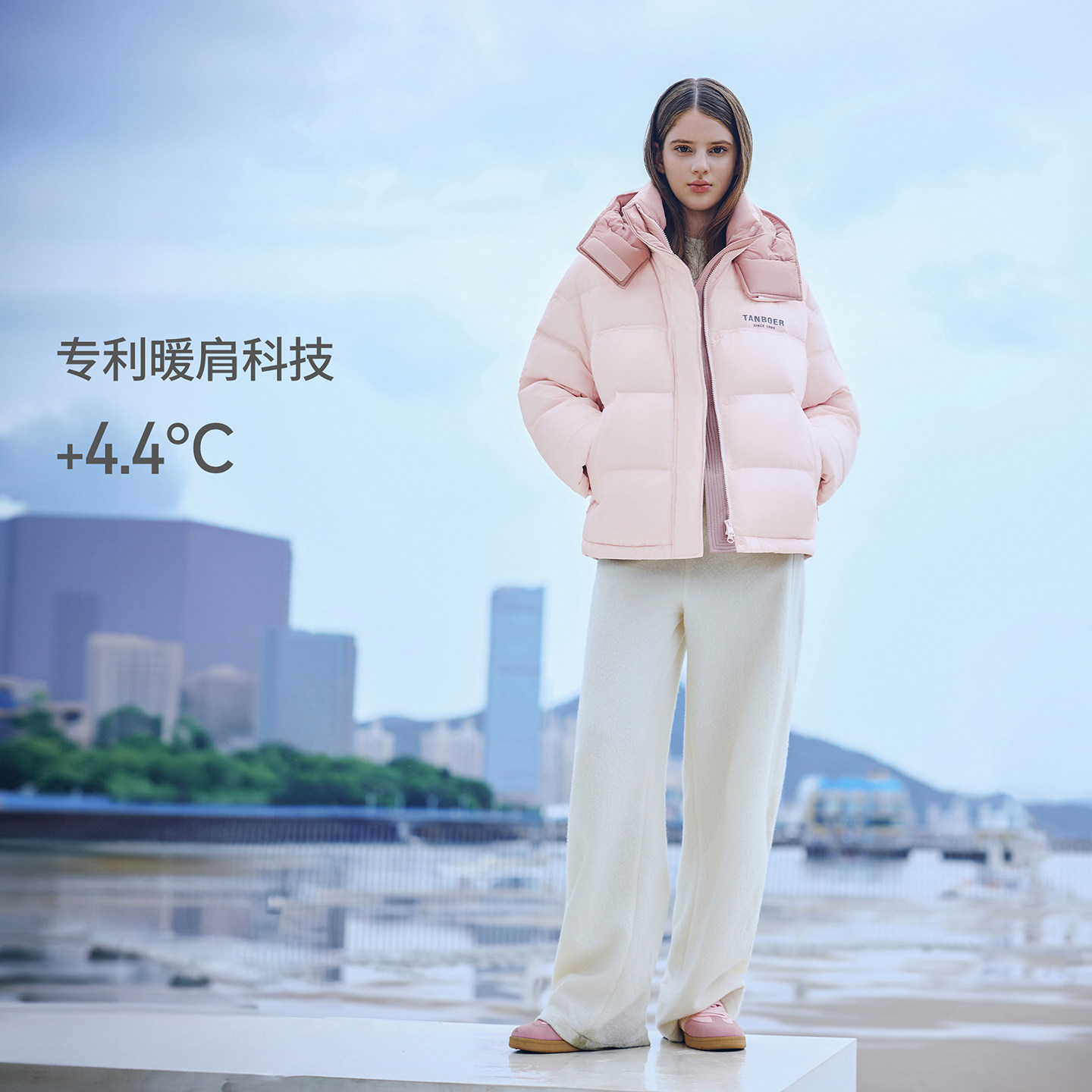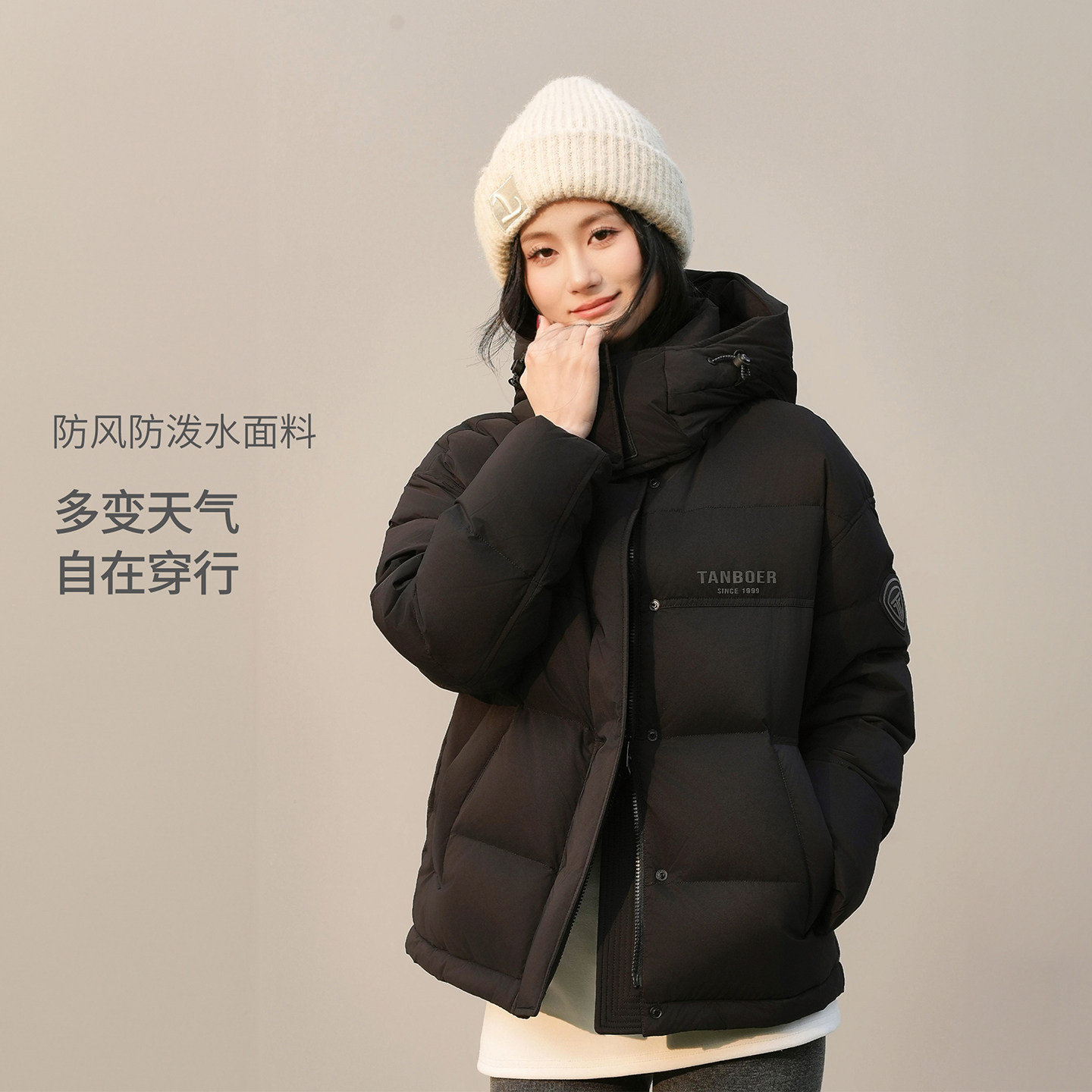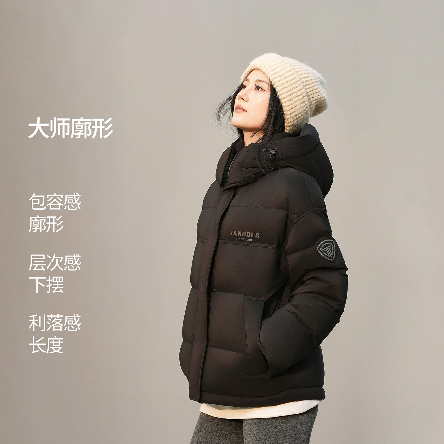 坦博尔2025冬季新款羽绒服女装户外短款加厚廓形连帽时髦保暖外套