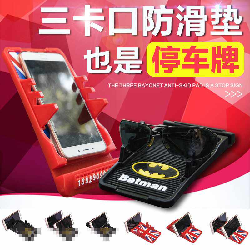 新款直销汽车多功能手机防滑垫车载三卡口手机导航支架临时停车牌