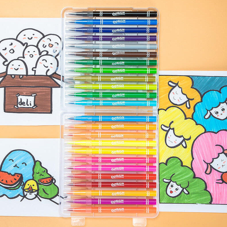 得力可水洗水彩笔24色儿童幼儿园美术专用无毒彩色笔36色粗头画笔