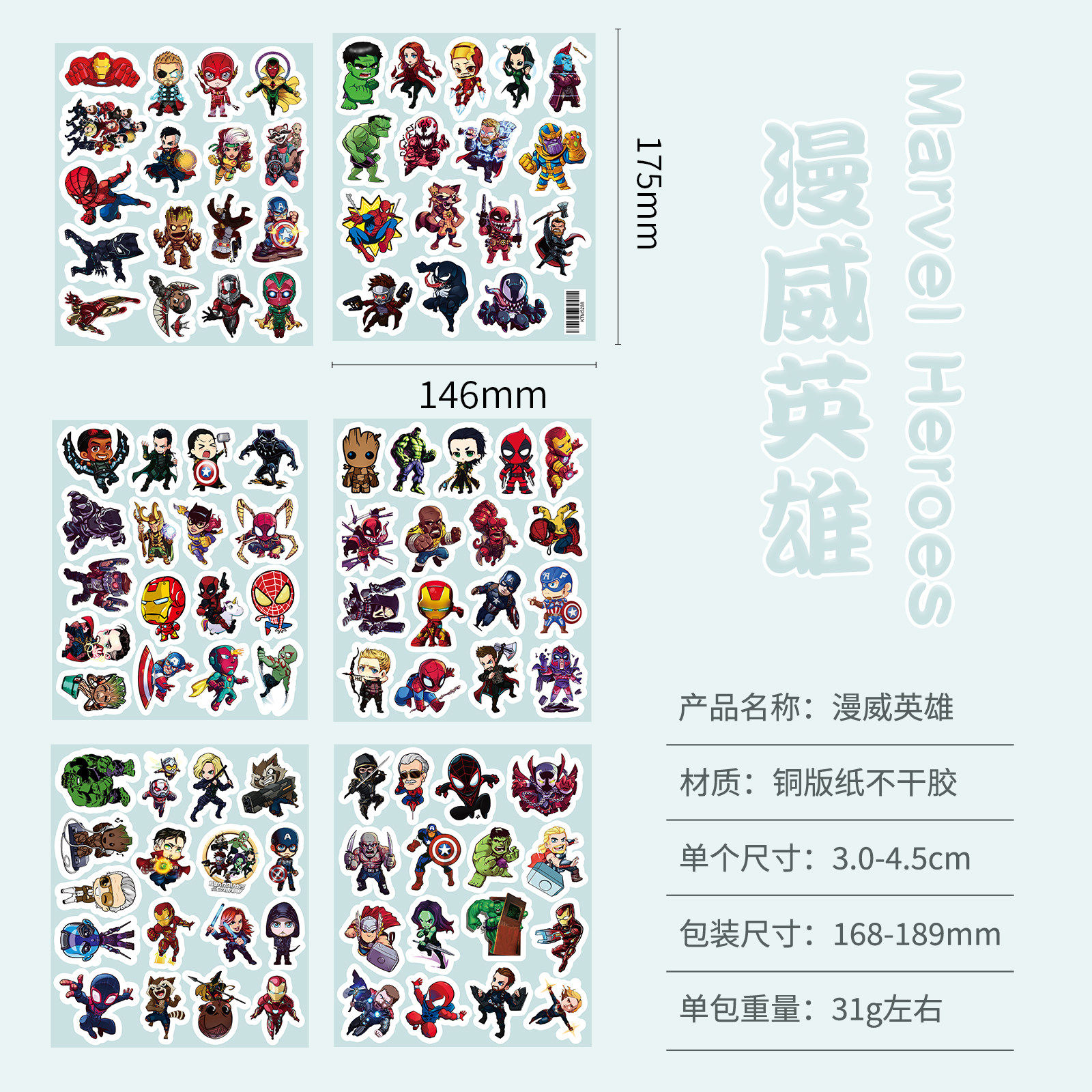 320张漫威宇宙贴纸大全周边钢铁侠蜘蛛侠贴画男孩儿童装饰笔记本
