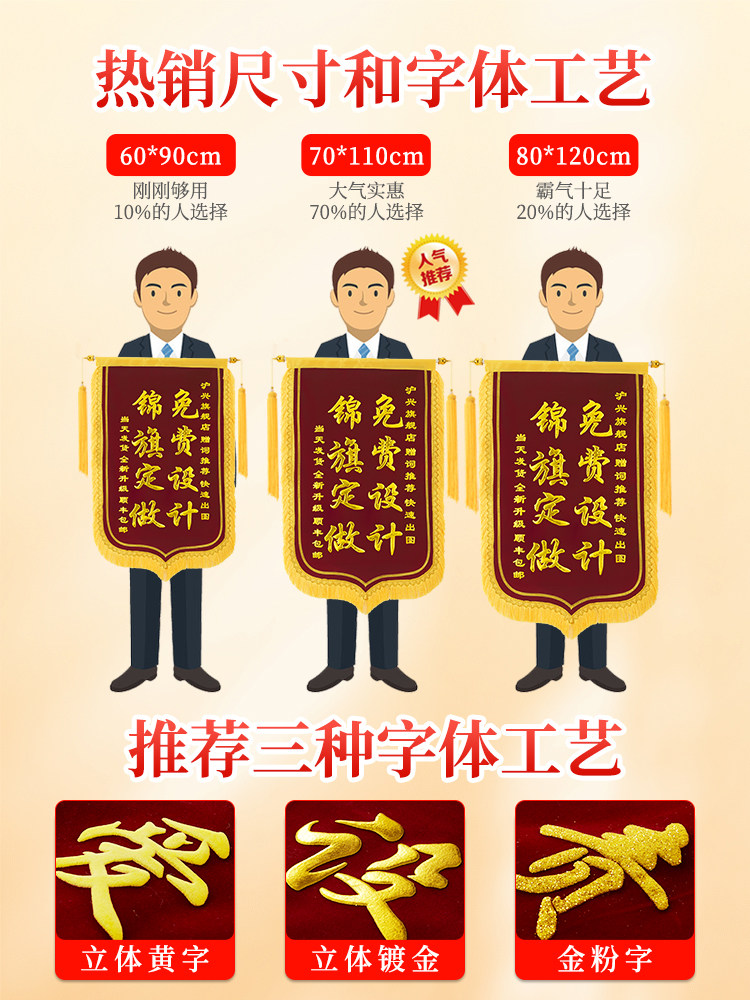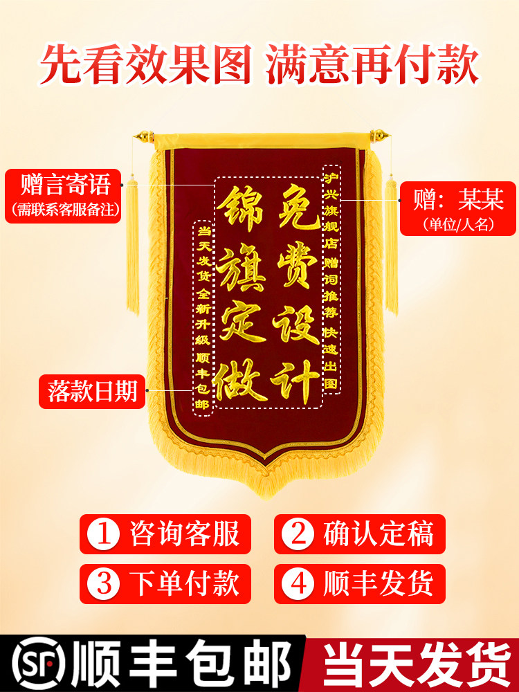 高档锦旗定制定做感谢服务赠送装修公司设计师订制订做感谢赠送工人师傅感恩高档定制植绒旌旗订做旗帜制作