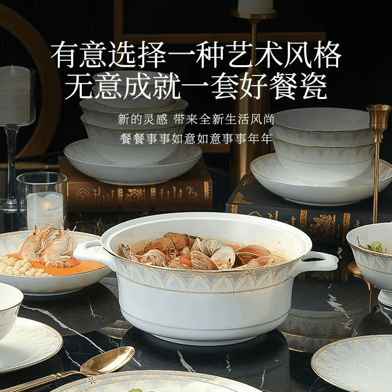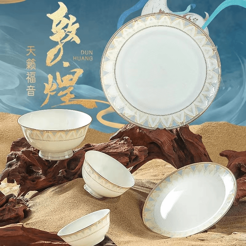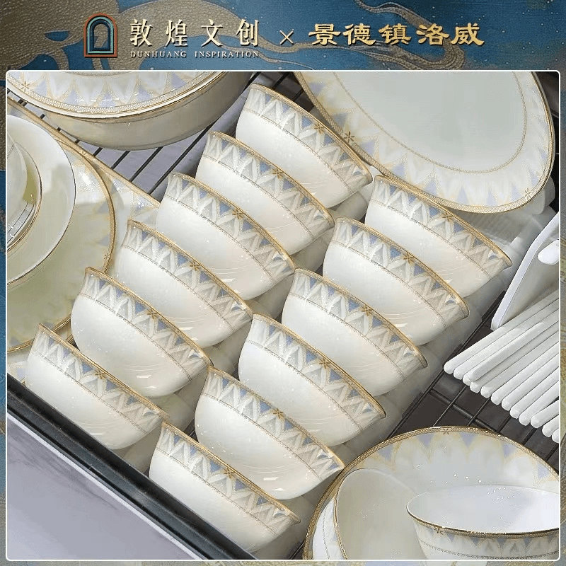 k姐推荐景德镇陶瓷洛威敦煌瑰丽餐具套装碗盘套装精致碗碟实用