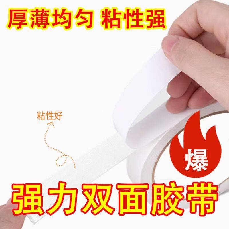 强力双面胶带办公用高粘度PP胶带白色强粘性商用胶带
