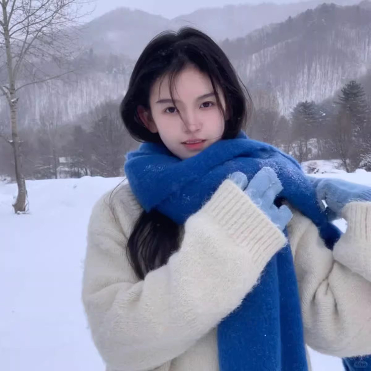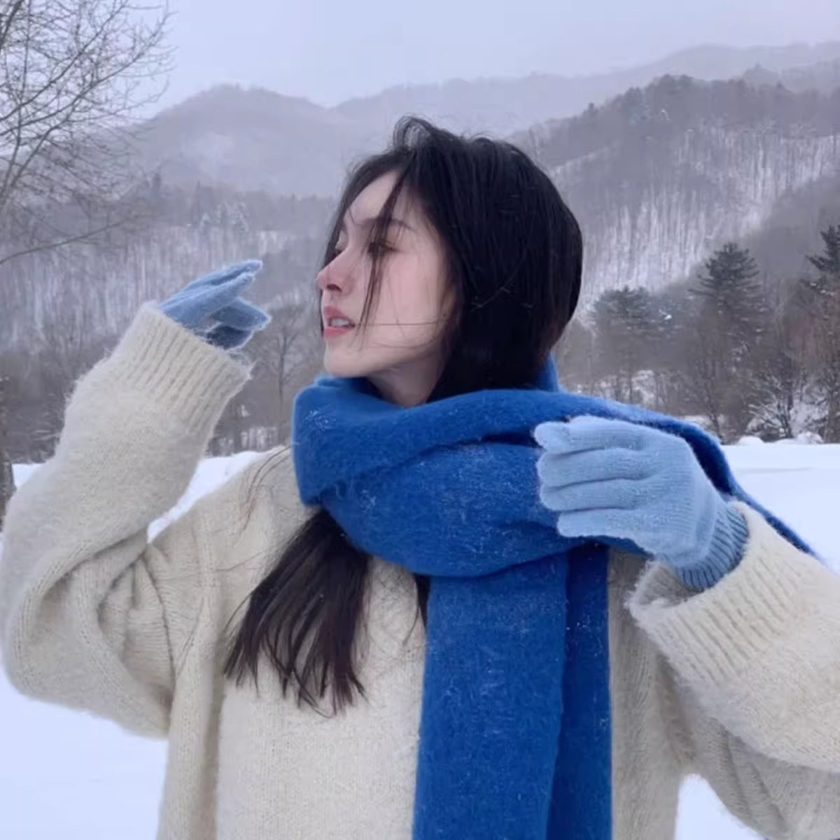 蓝色围巾克莱因蓝仿羊绒披肩女款冬季围脖2025新款秋冬韩系氛围感