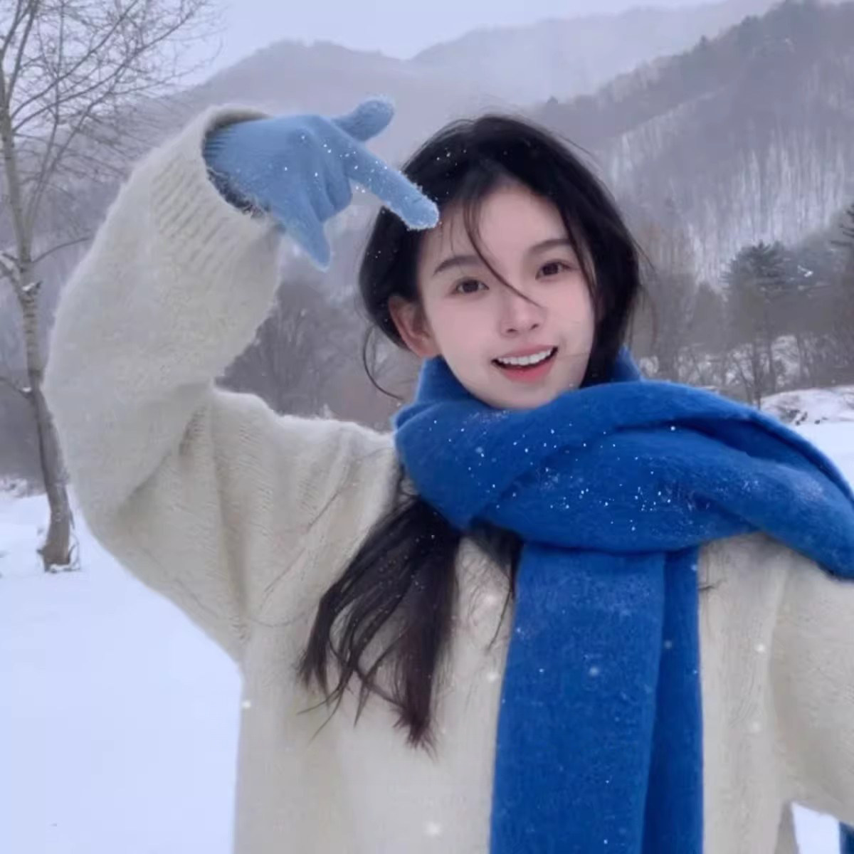 雪花双面针织围巾女秋冬季韩系氛围感加厚保暖高级感围脖复古披肩