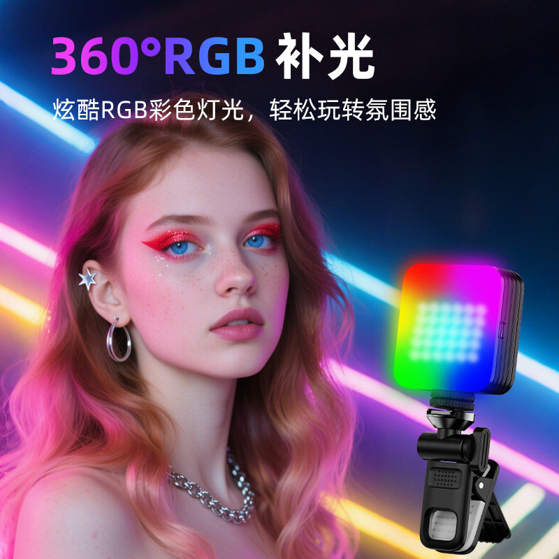 手机补光灯豆腐灯口袋灯夹手机手持便携相机拍摄补光拍照补光直播下巴手机美颜拍照面部rgb全彩柔光灯