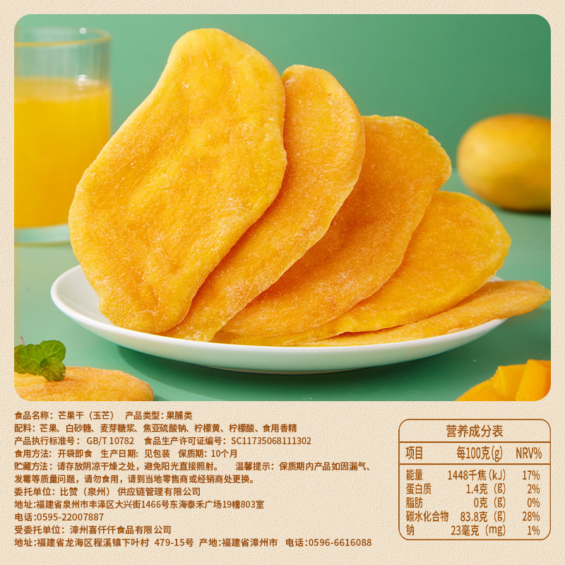 比比赞芒果干厚切大片水果干零食过年年货蜜饯果脯休闲食品500g