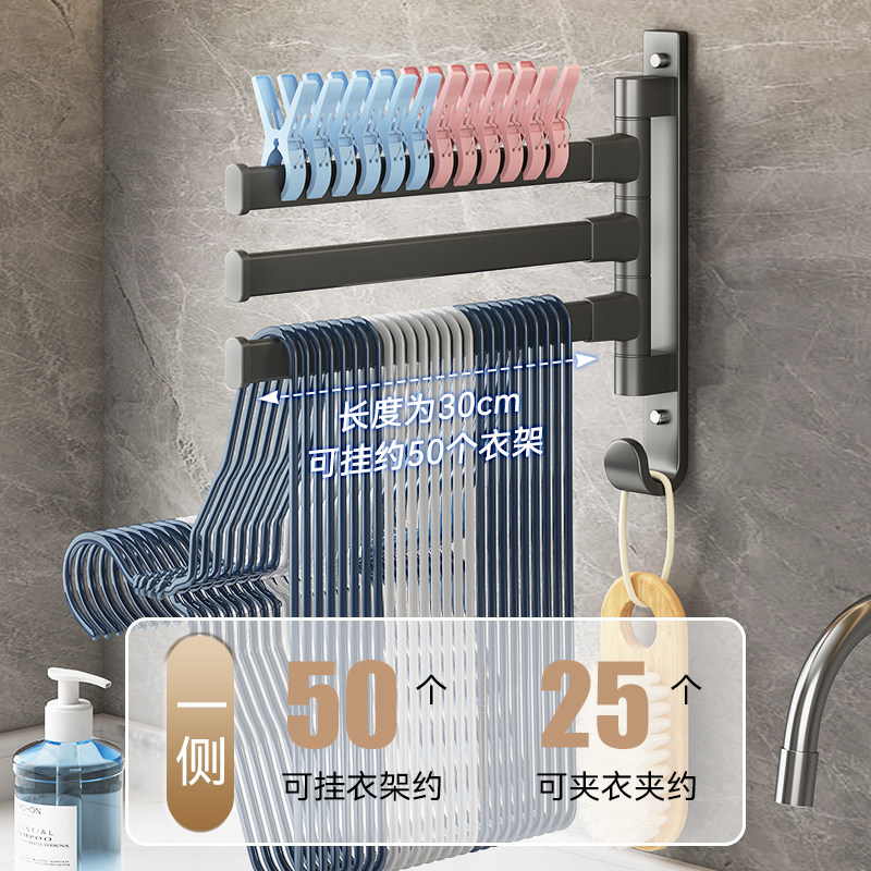 衣架收纳架免打孔阳台晾衣杆旋转家用收纳神器壁挂式挂钩粘胶承重