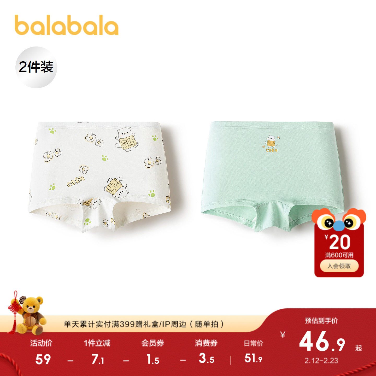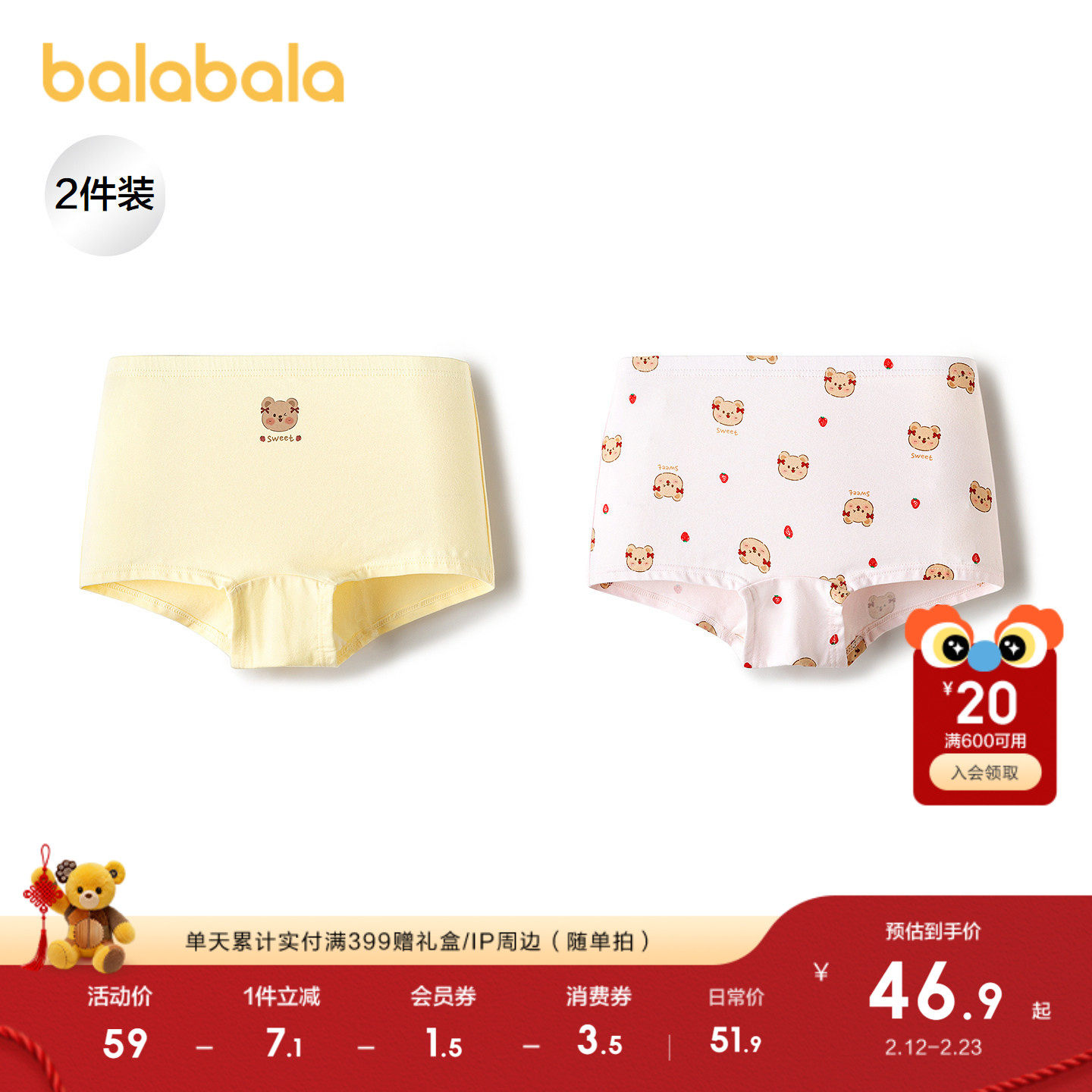 【商场同款】巴拉巴拉女童内裤儿童四角短裤小童宝宝不夹PP两条装