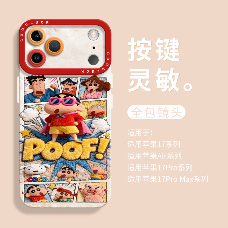 可爱毛绒超人小新适用iPhone17手机壳苹果17promax液态苹果air全包瞳眼硅胶壳17pro保护套ip17带挂绳17男女