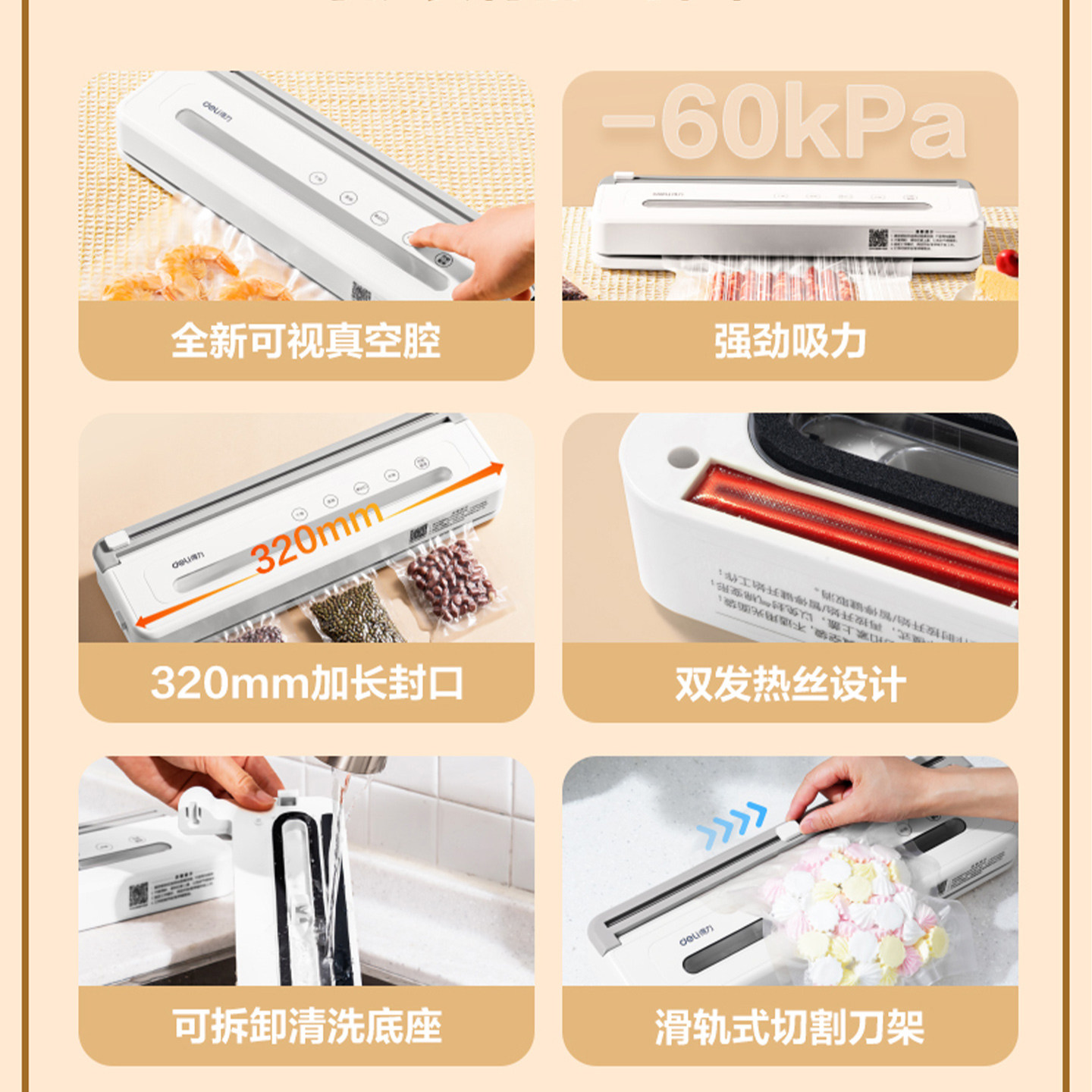得力真空封口机LM775小型家用新款抽真空包装机食品保鲜密封机