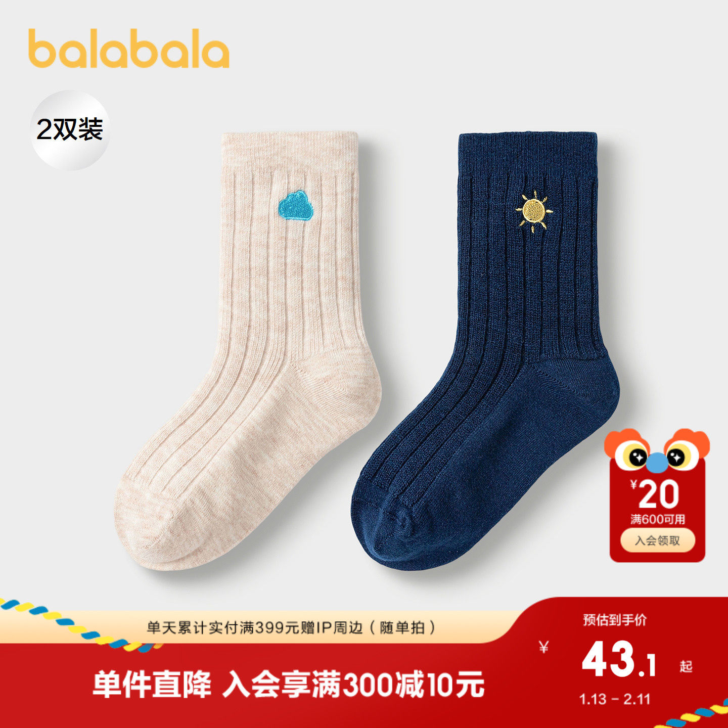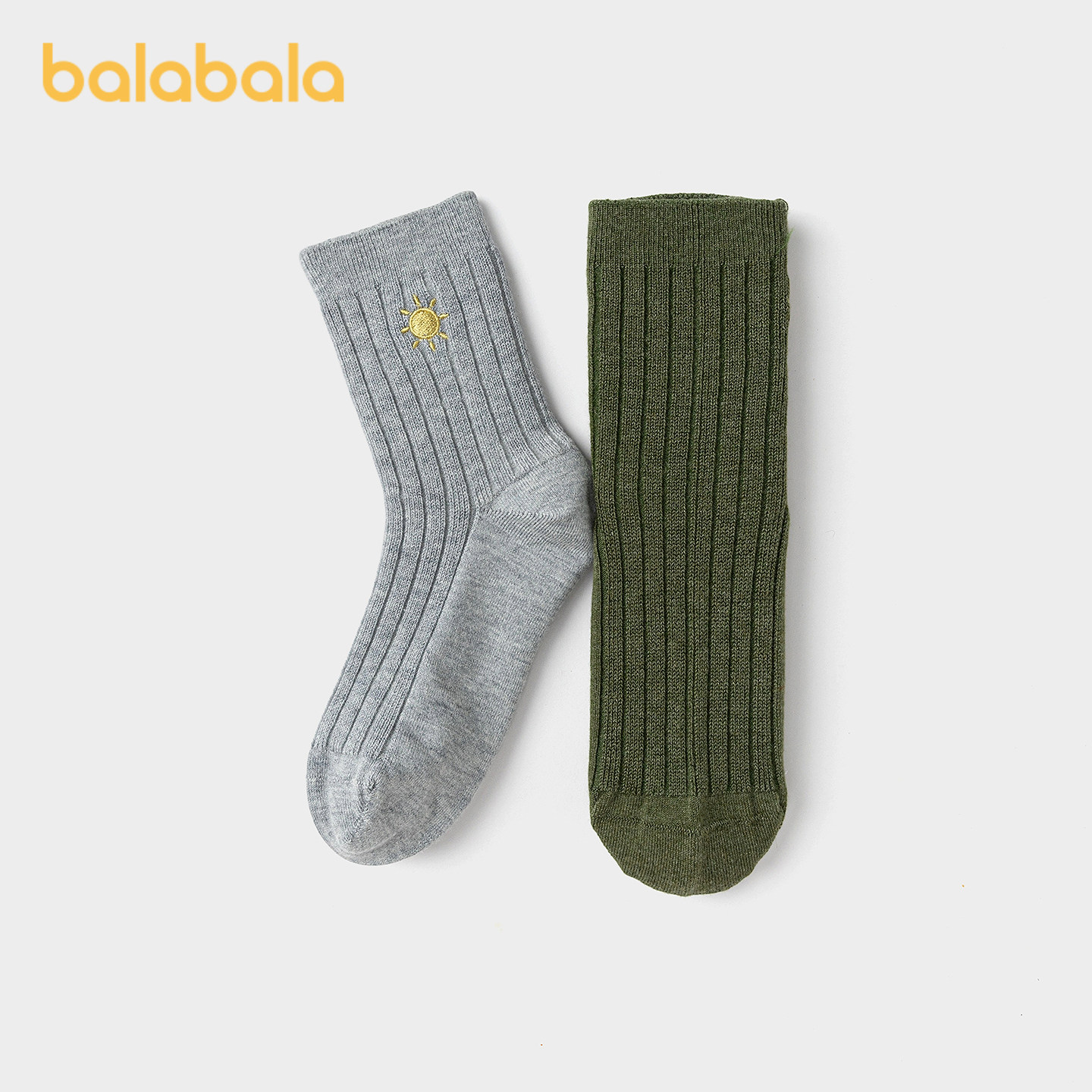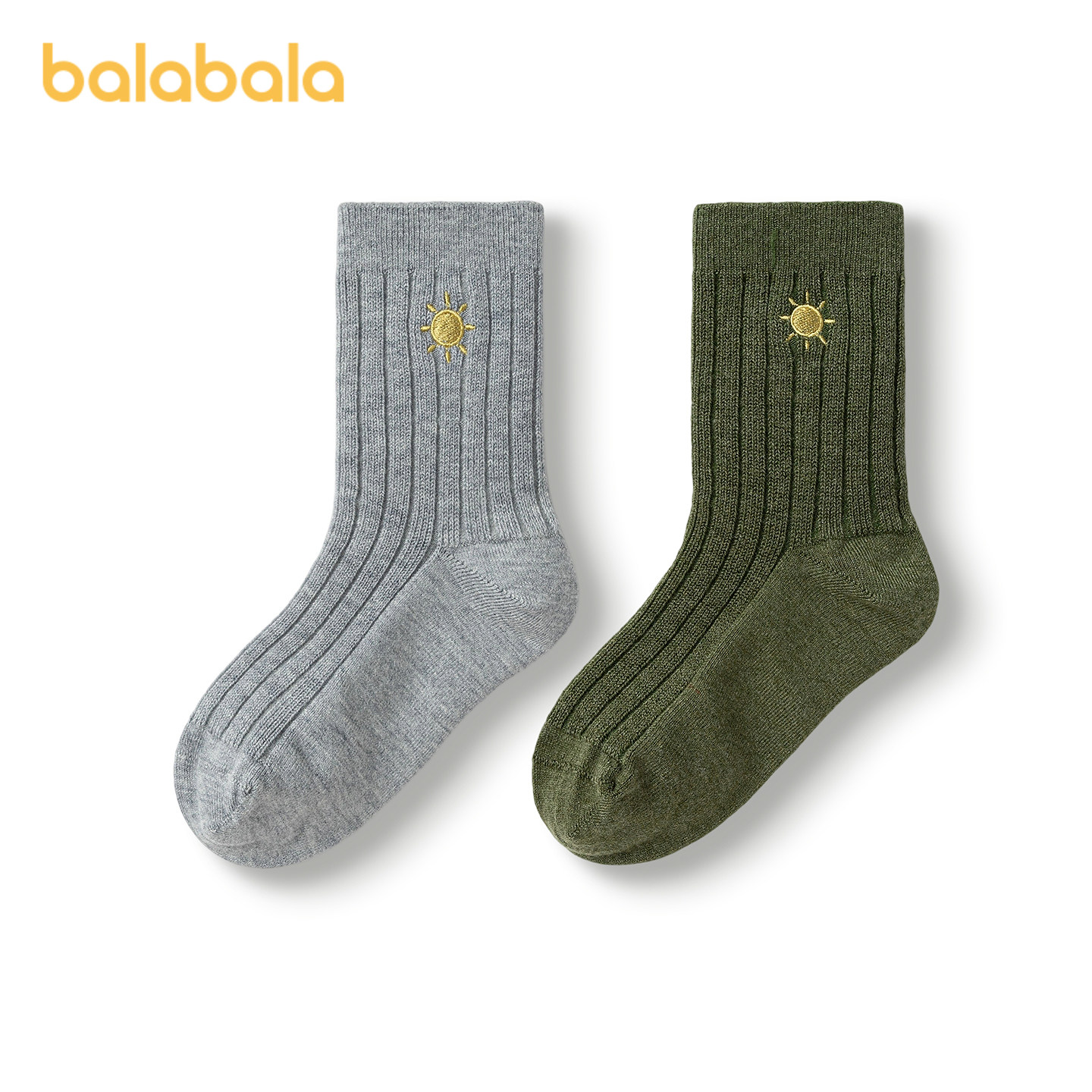 【商场同款】巴拉巴拉儿童袜子秋冬男童短袜中幼童含羊毛暖两双装