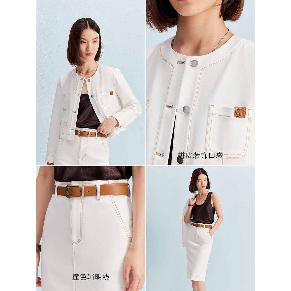 Vero Moda套装2025秋季新款含莱赛尔拼皮牛仔上衣半身裙325357001