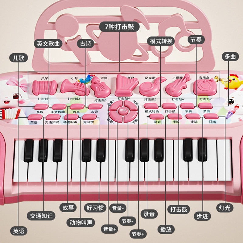 儿童电子钢琴早教益智1-3--6周岁音乐男女孩玩具宝宝生日礼物兔子
