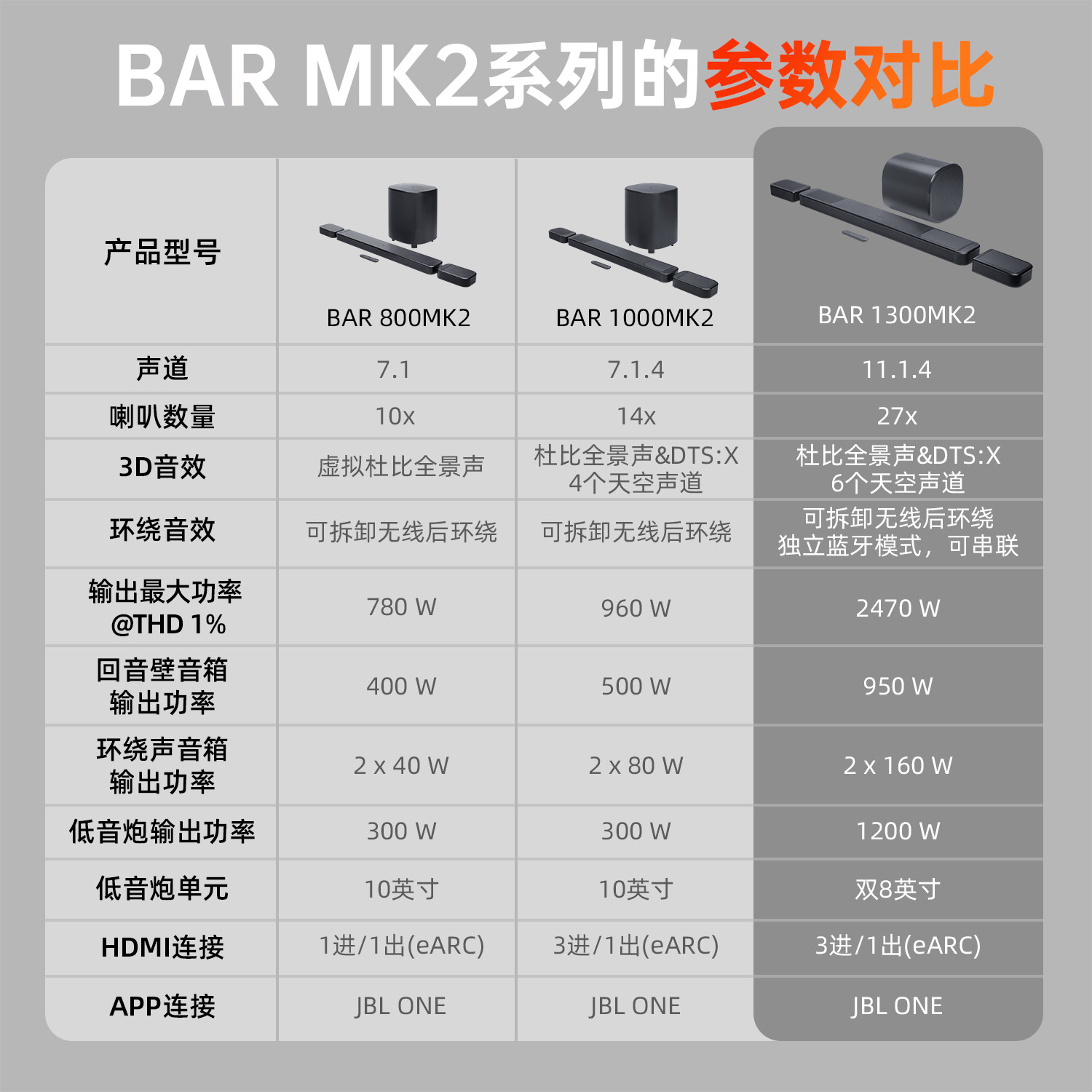 JBL BAR1300MK2回音壁音响11.1.4声道杜比全景声家庭影院补贴15%