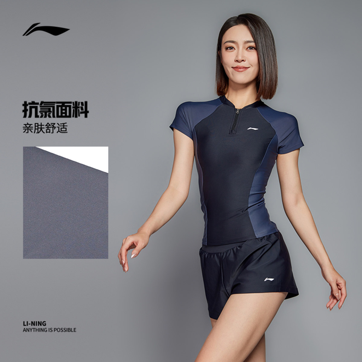 李宁泳衣女2024新款爆款夏季弹力修身高级感专业竞速分体平角泳装