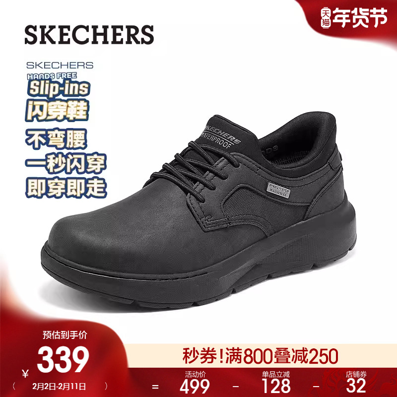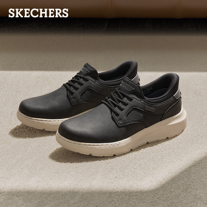 斯凯奇2026春季新款男子舒适休闲皮鞋时尚百搭商务鞋通勤鞋德比鞋