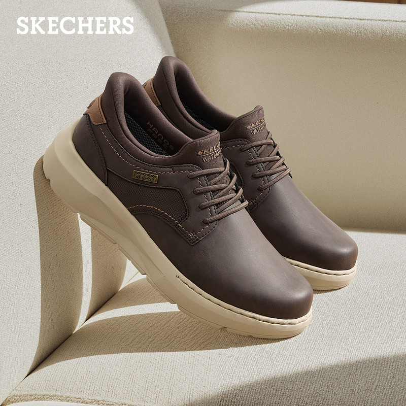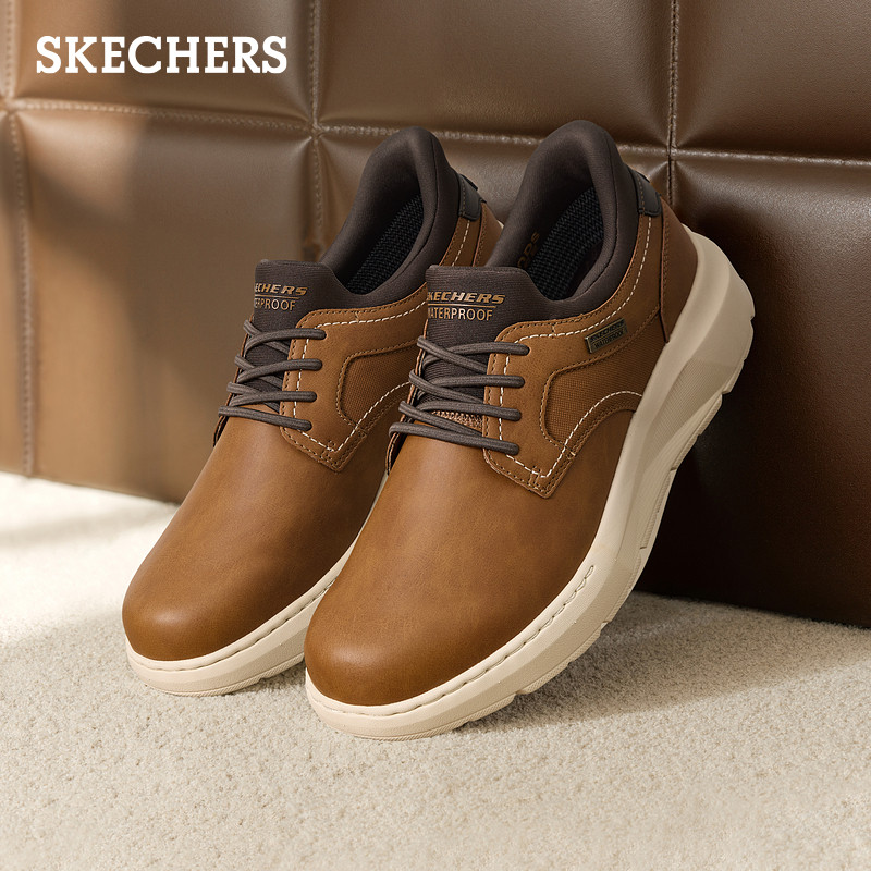 斯凯奇秋冬新款男子舒适休闲皮鞋商务鞋通勤鞋德比鞋软底上班板鞋
