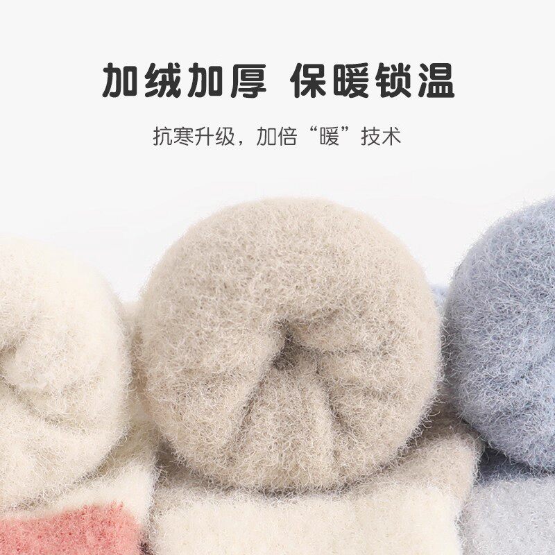 新生婴儿袜子秋冬款加绒加厚0-6月保暖宝宝袜儿童中筒袜防滑卡通